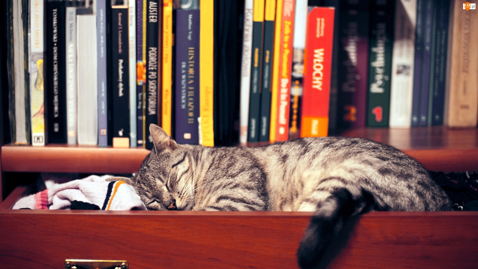 Śpiący, Książki, Kot, Szuflada