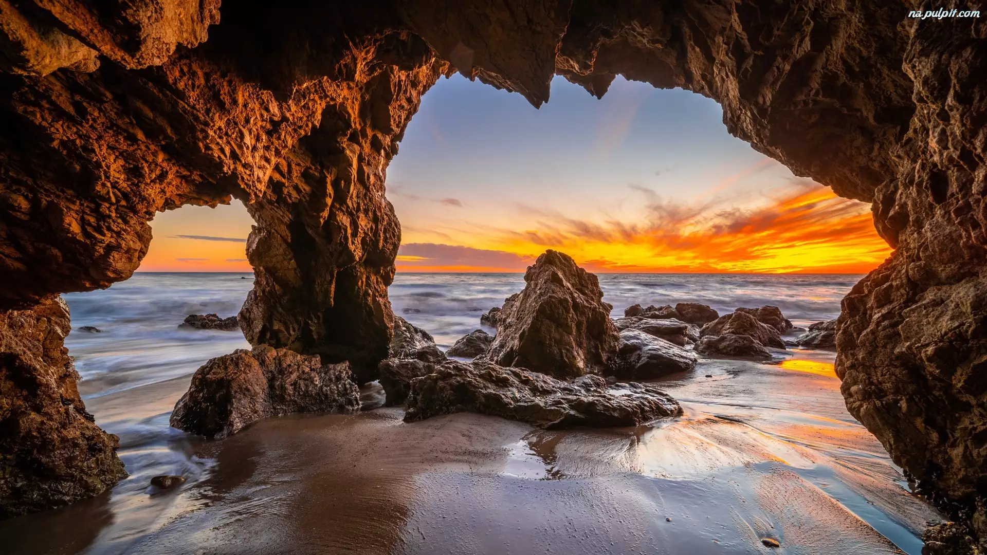Stan Kalifornia, Stany Zjednoczone, Morze, Skały, Malibu, Jaskinia