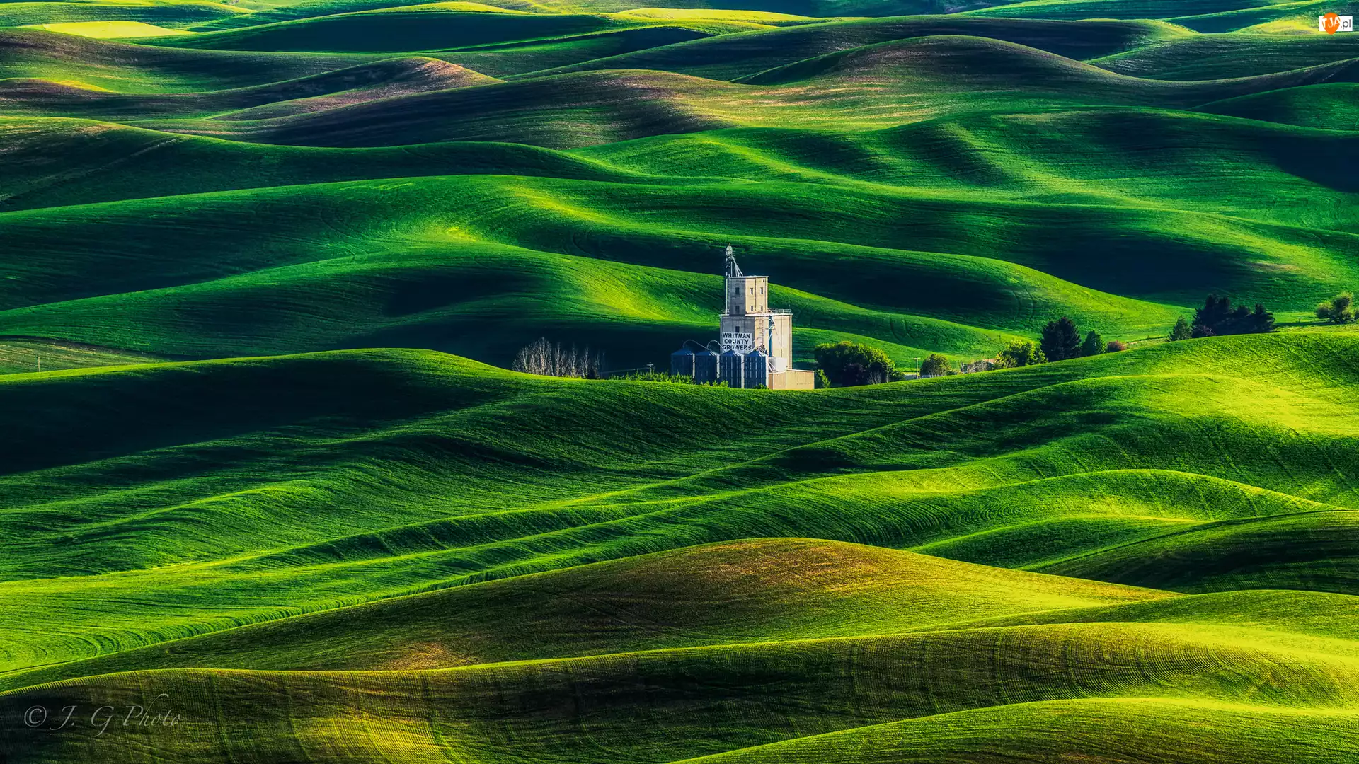 Stany Zjednoczone, Drzewa, Stan Waszyngton, Steptoe Butte State Park, Region Palouse, Łąki, Pola, Wzgórza, Budowla