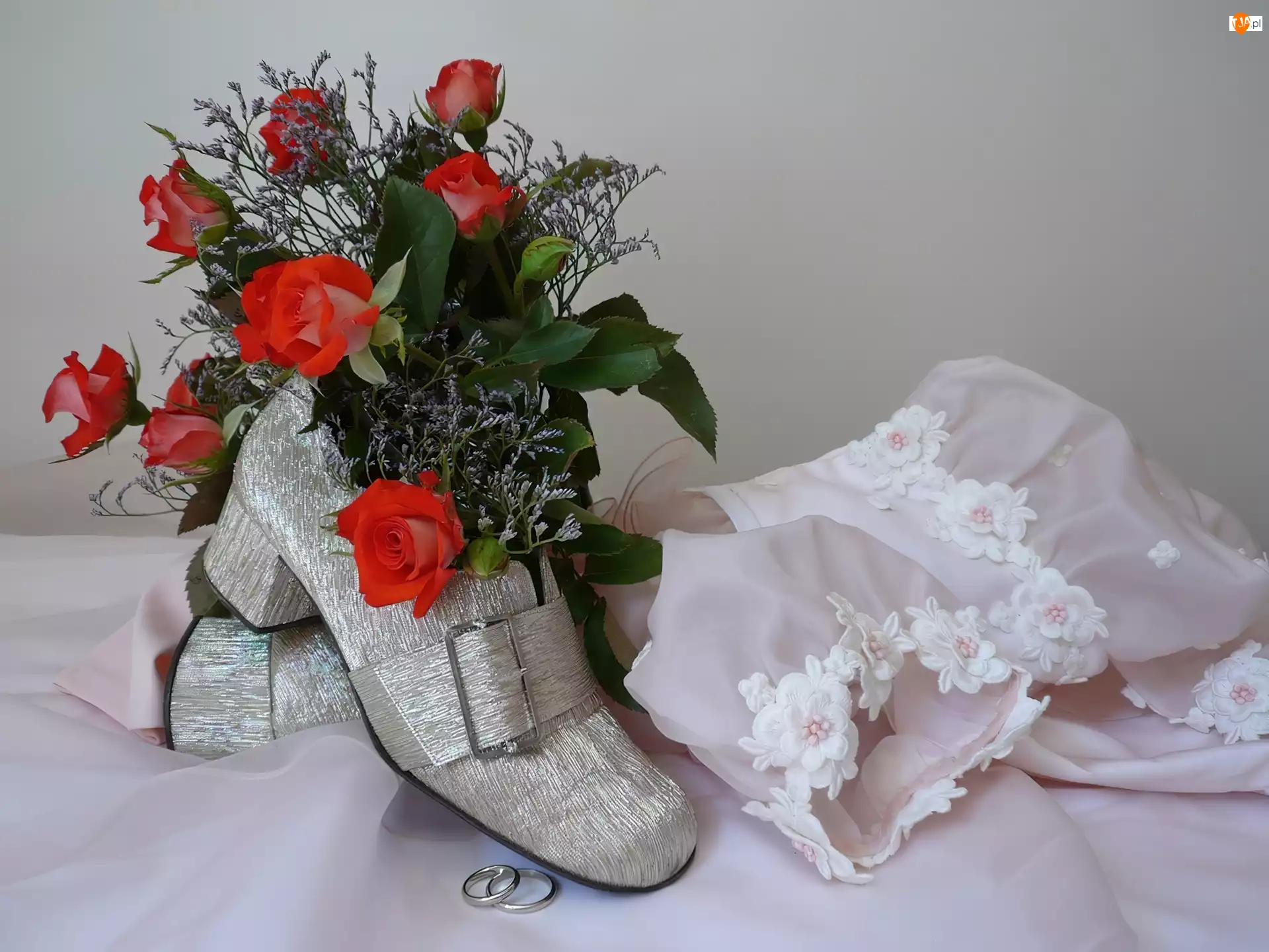 Czerwone, Sukieneczka, Buty, Obrączki, Róże