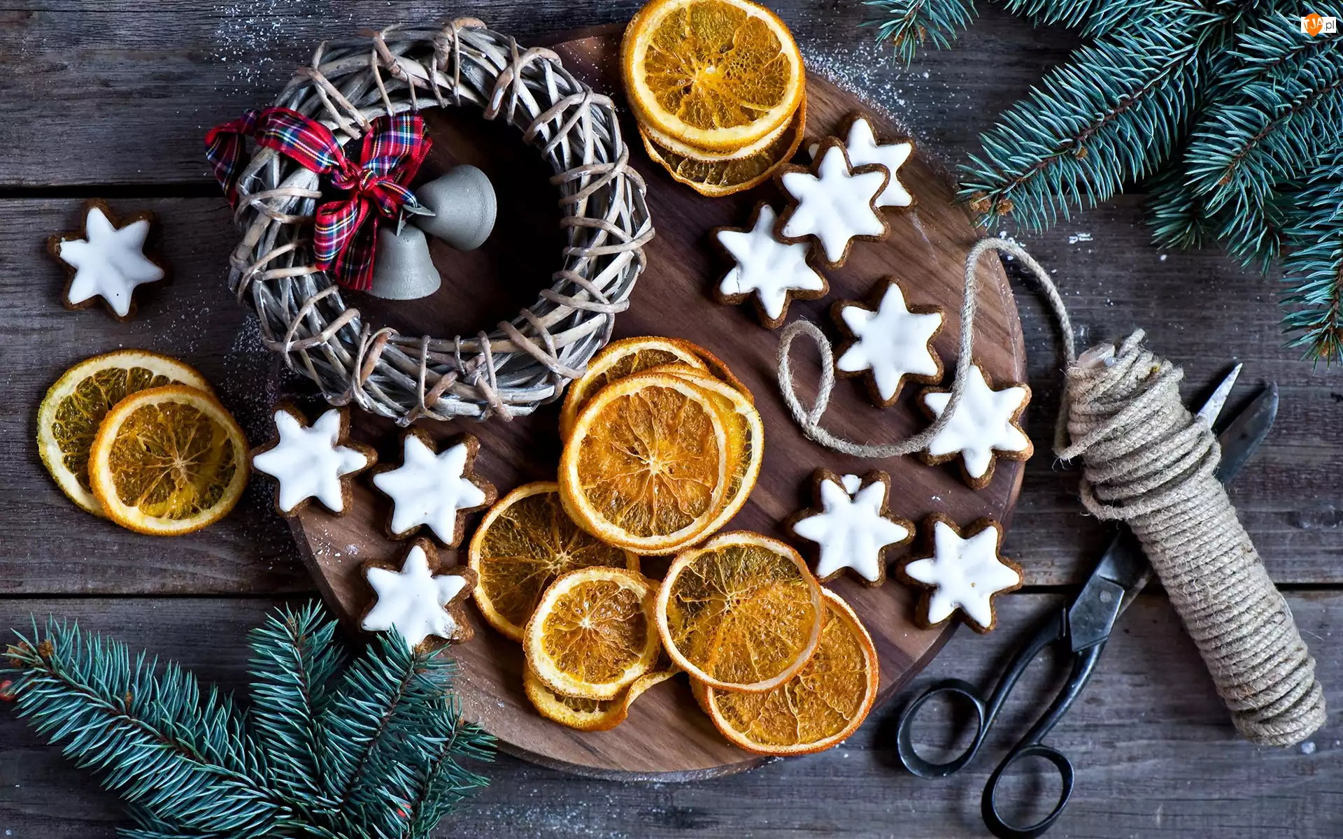 Pierniczki, Plastry, Boże Narodzenie, Kompozycja, Gałżki, Nożyce, Pomarańcze
