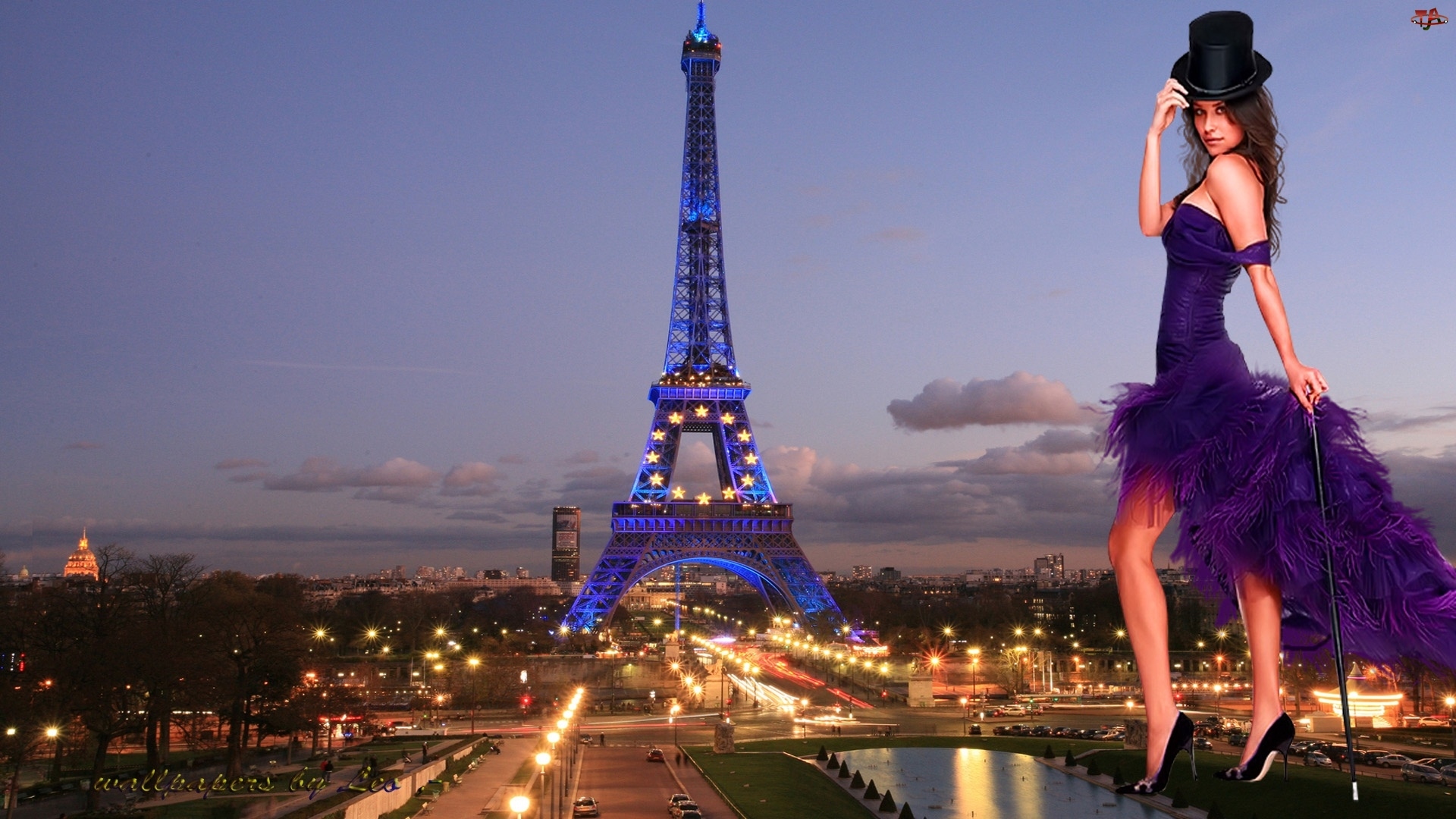 Światła, Kobieta, Ulice, Wieża Eiffla