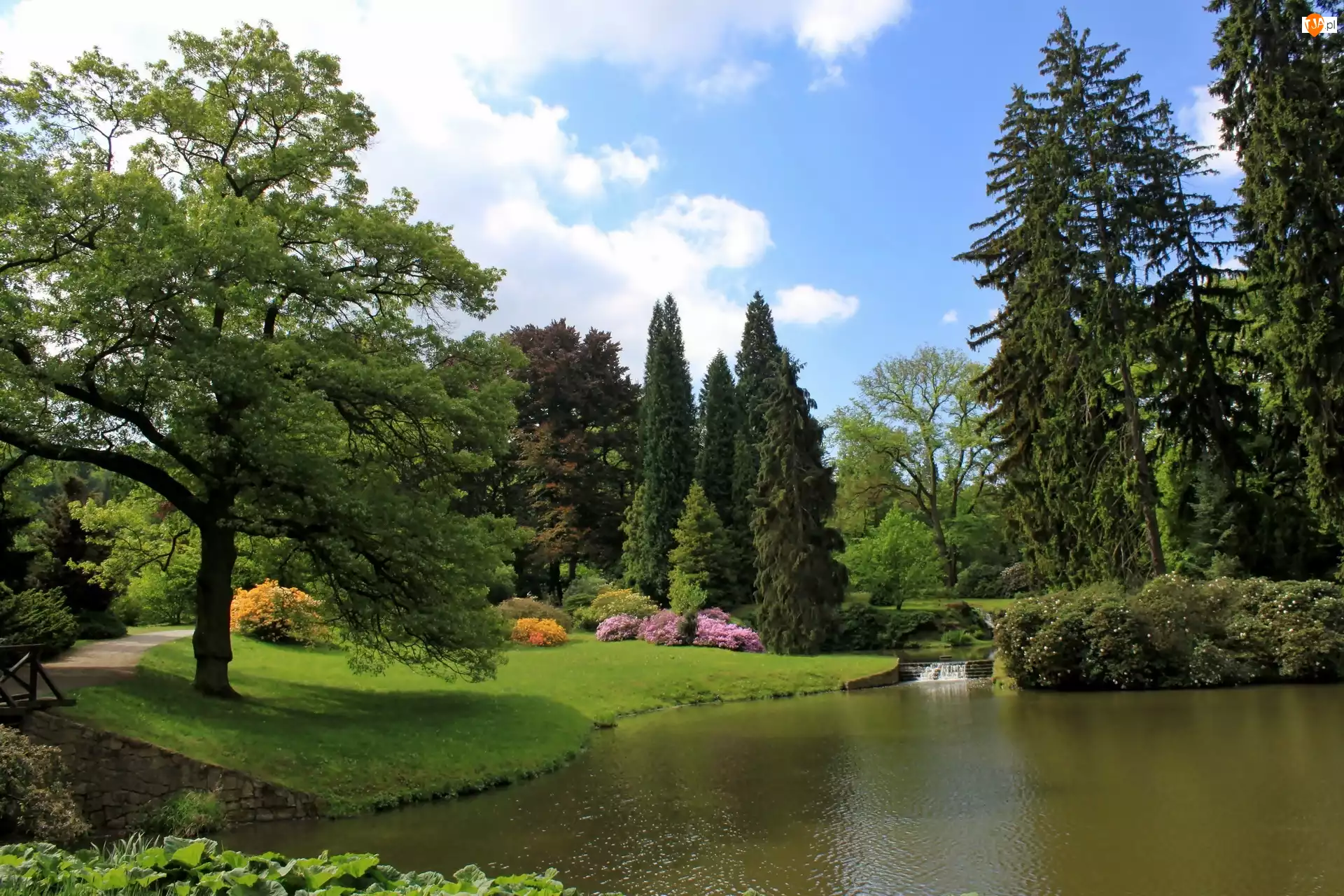 Światło, Pruhonice, Staw, Park, Przebijające