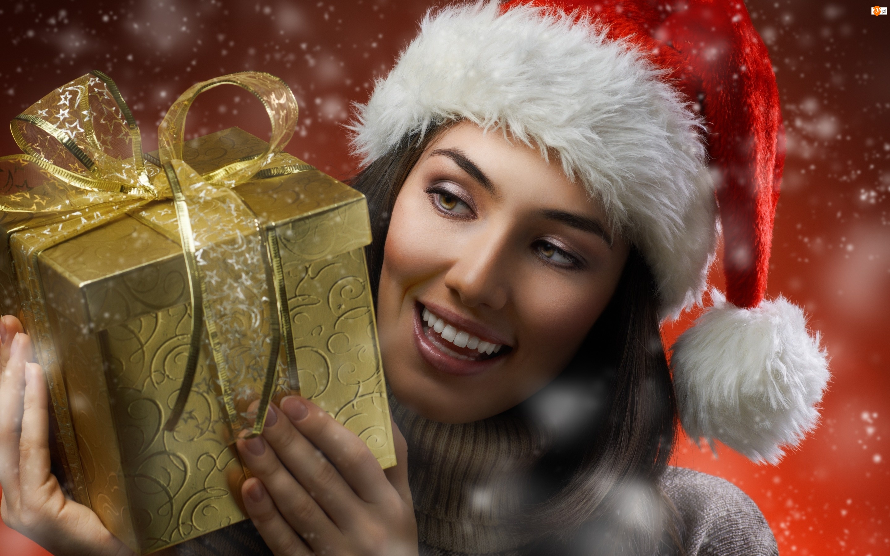 Święta, Kobieta, Czapka, Prezent, Mikołaja