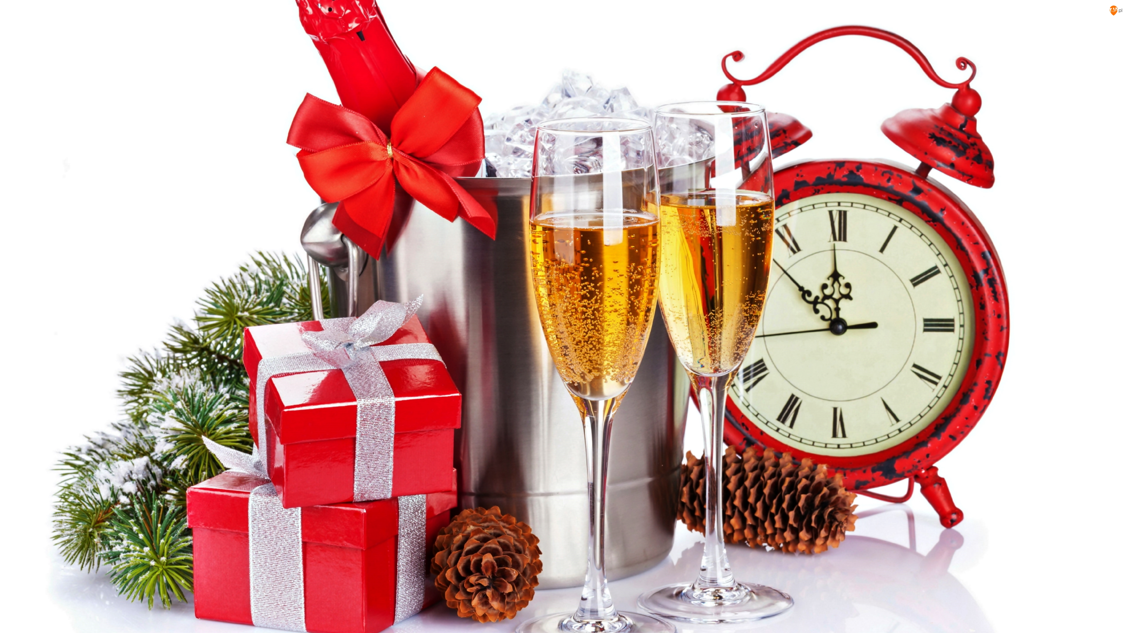 Prezenty, Szampan, Dwa, Sylwester, Kompozycja, Kieliszki, Budzik