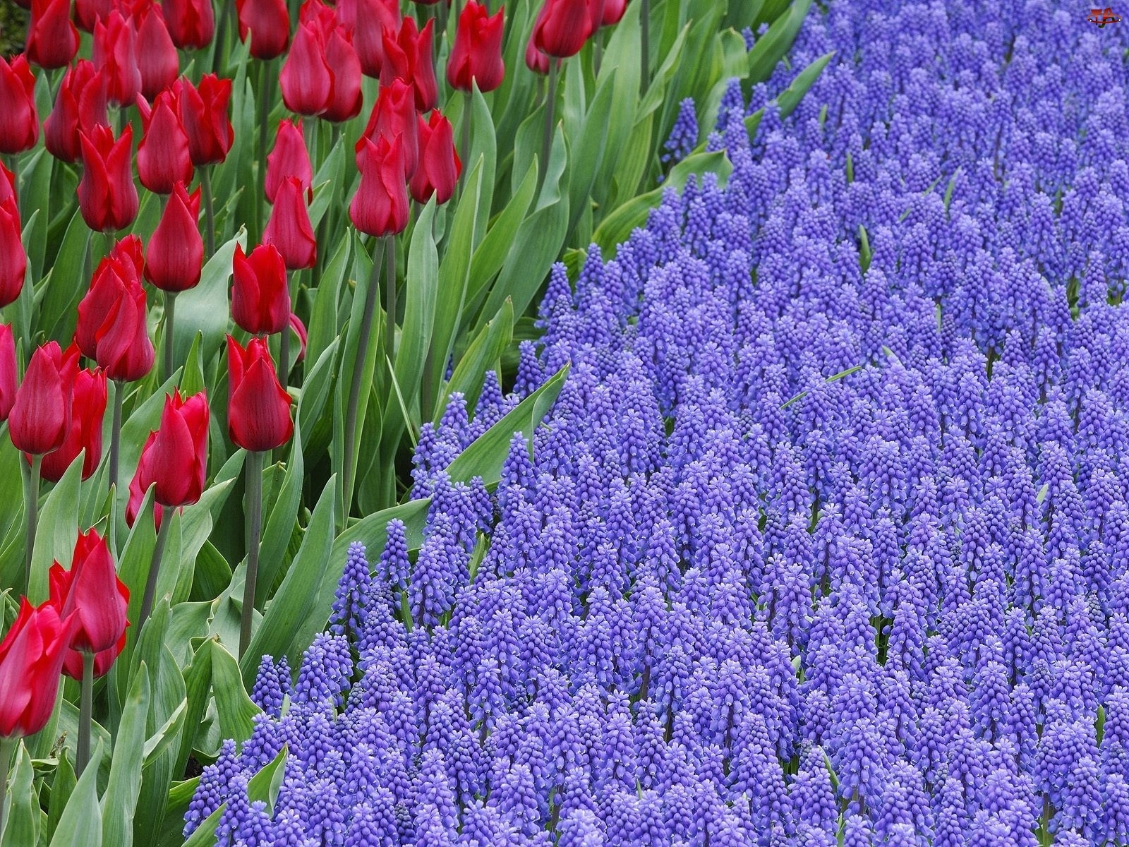 Szafirki, Piękne, Czerwone, Kwiaty, Tulipany