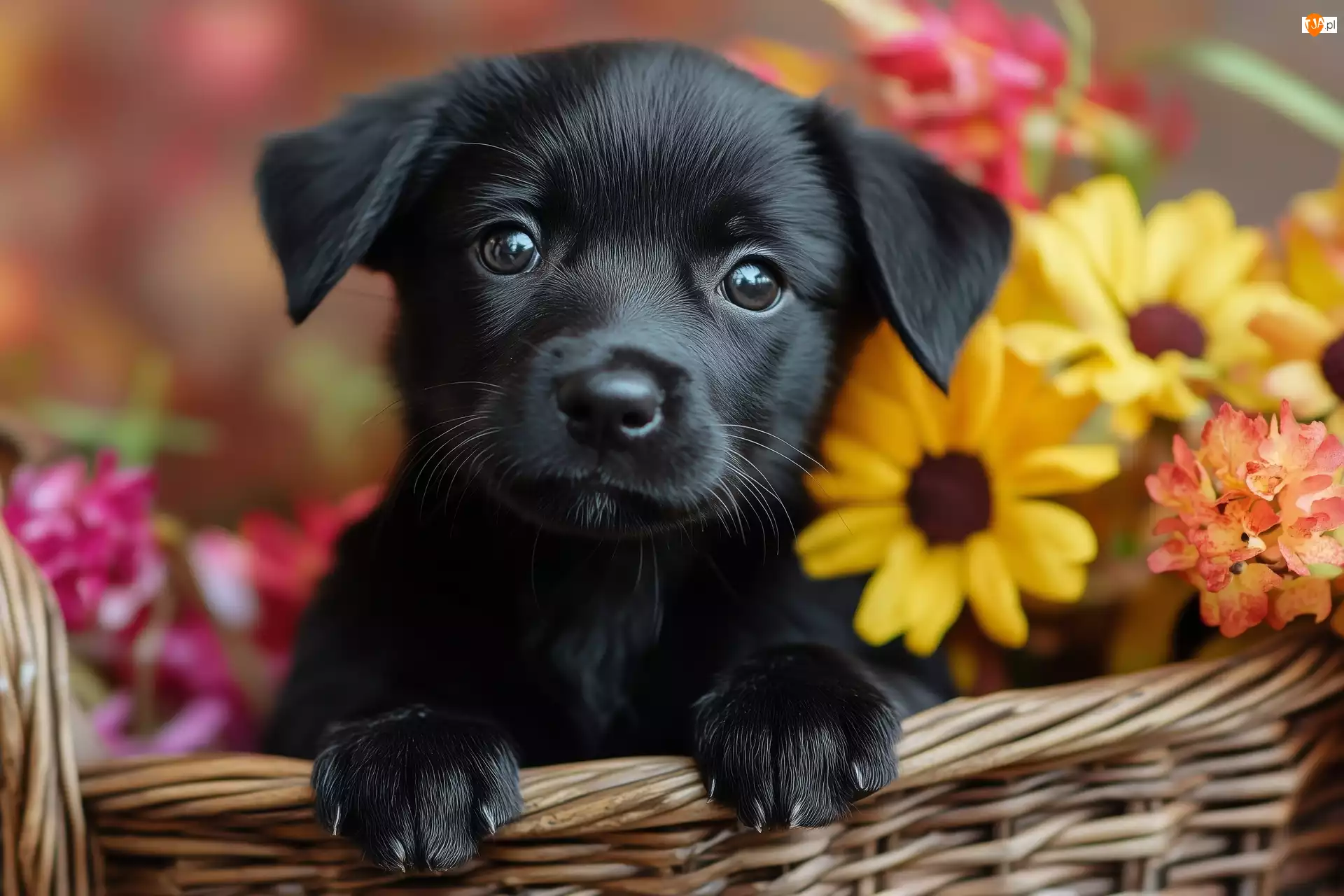 Tagi: Szczeniak Koszyk Pies Czarny Kwiaty