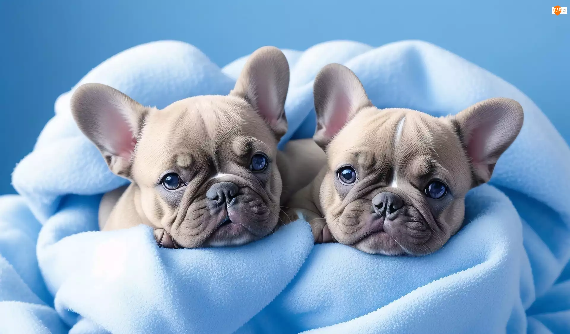 Szczeniaki, Koc, Buldog francuski, Psy, Błękitny