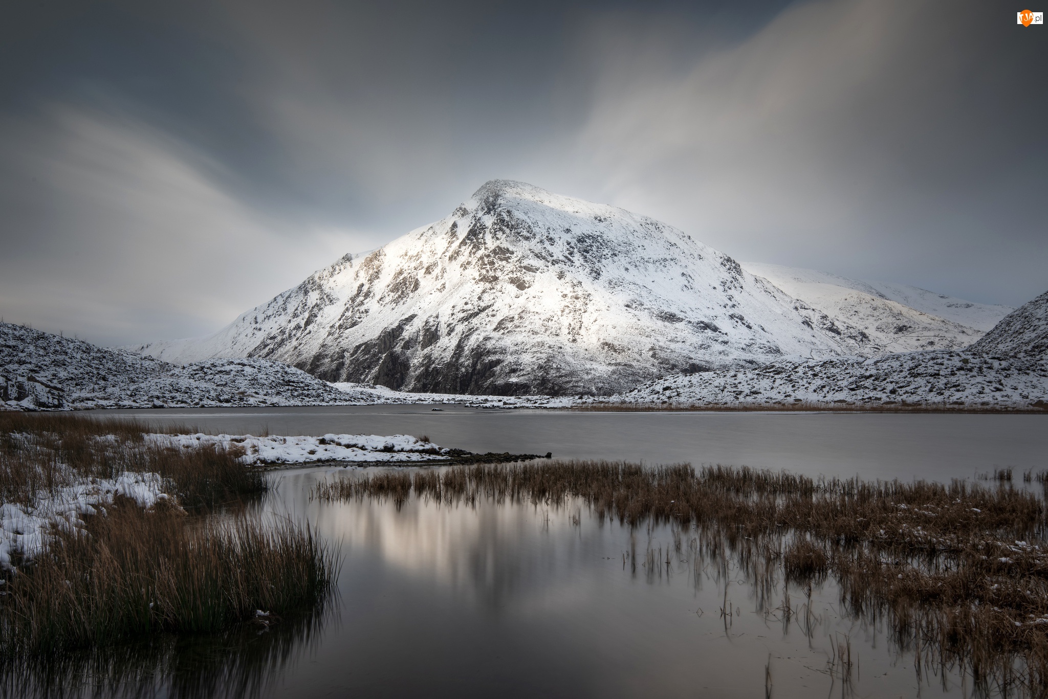 Jezioro, Walia, Zima, Góra Pen yr Ole Wen, Park Narodowy Snowdonia