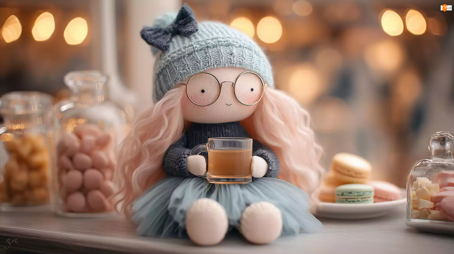 Szklanka, Lalka, Ciastka, Grafika AI, Herbata, Cukierki