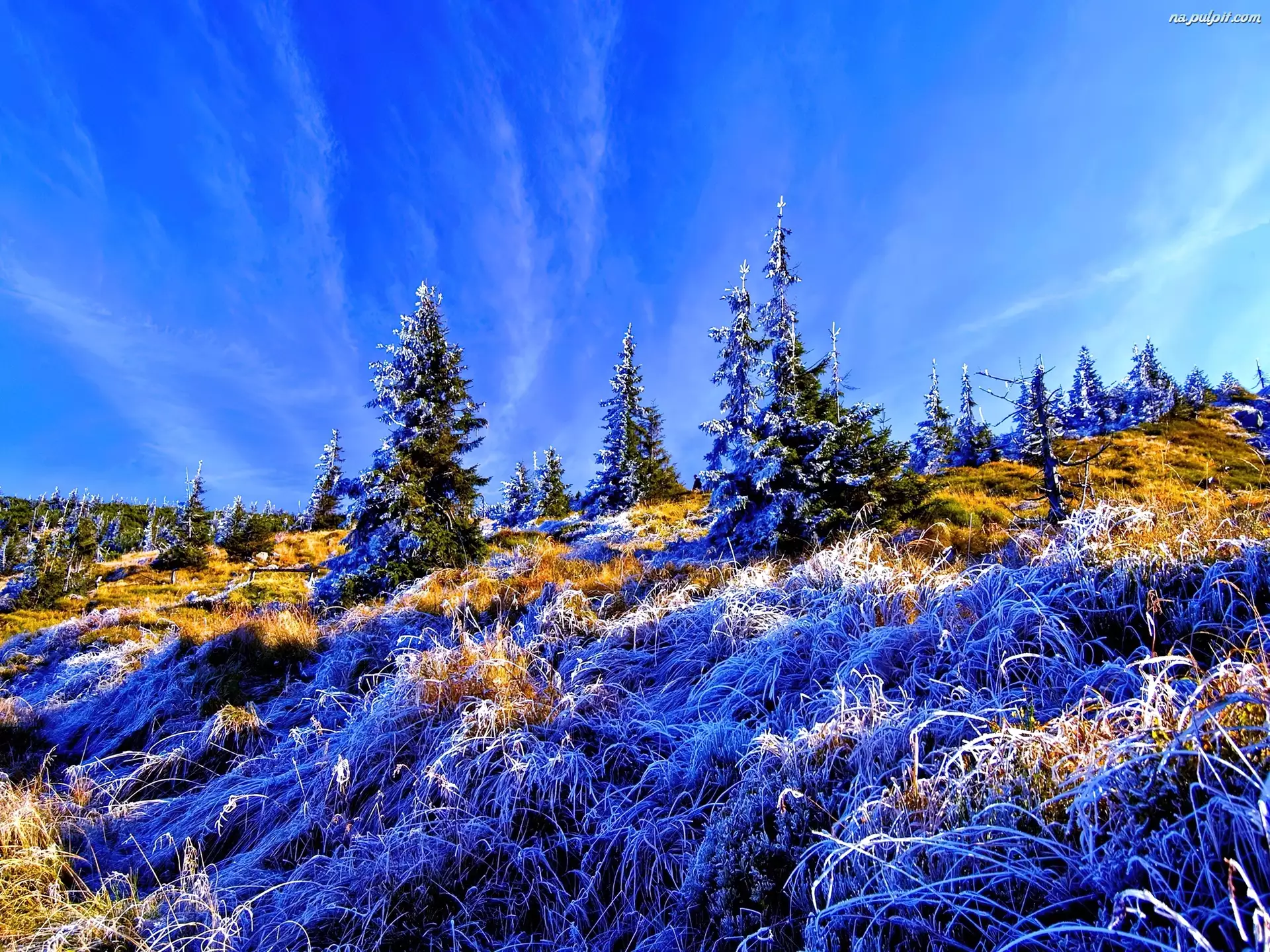 Szron, Choinki, Trawa
