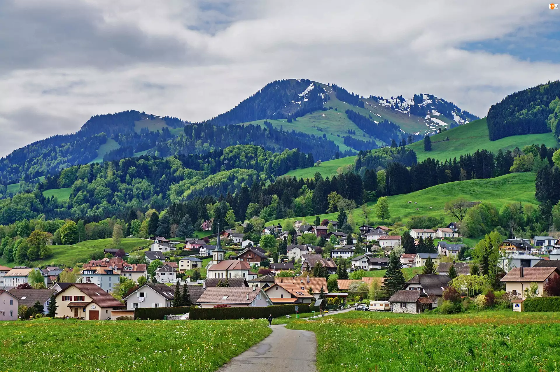 Miasteczko, Szwajcaria, Droga, Góry, Gruyere