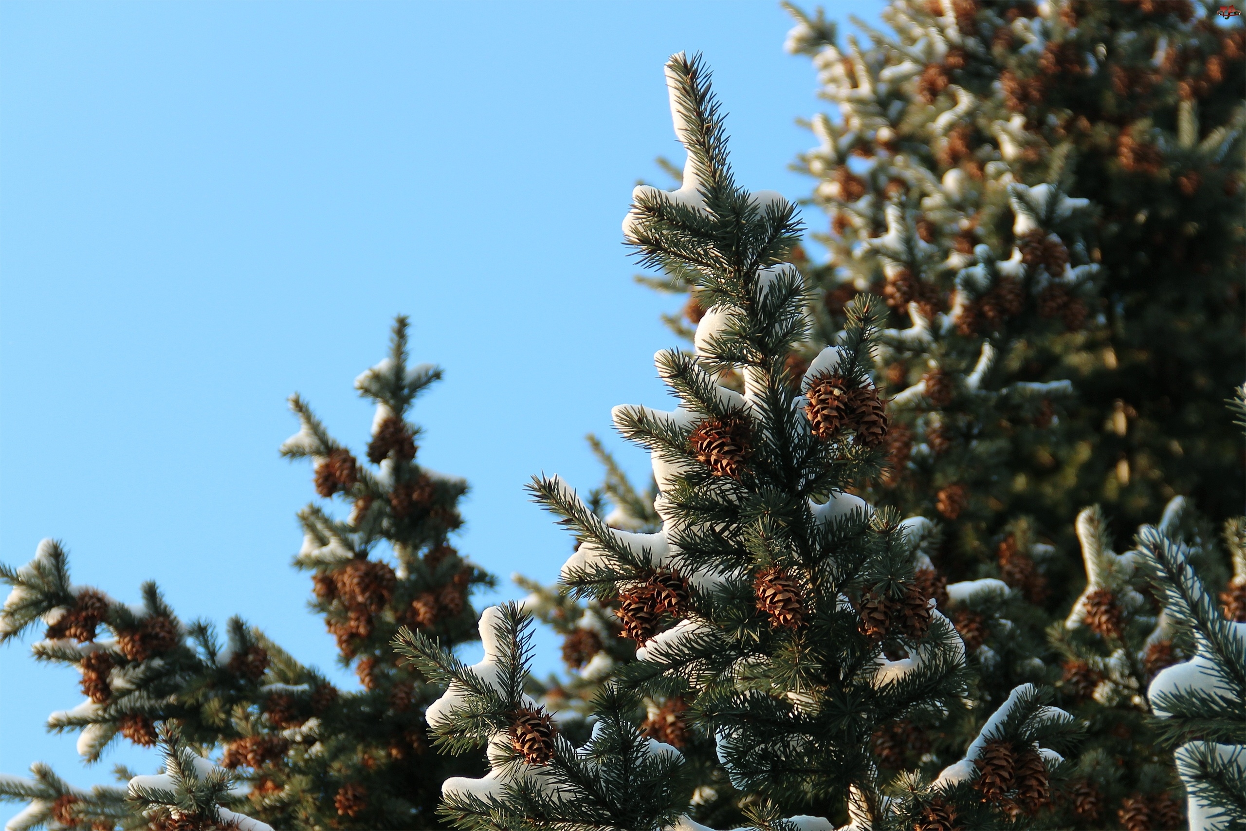 Gałązki, Szyszki, Świerk, Ośnieżone