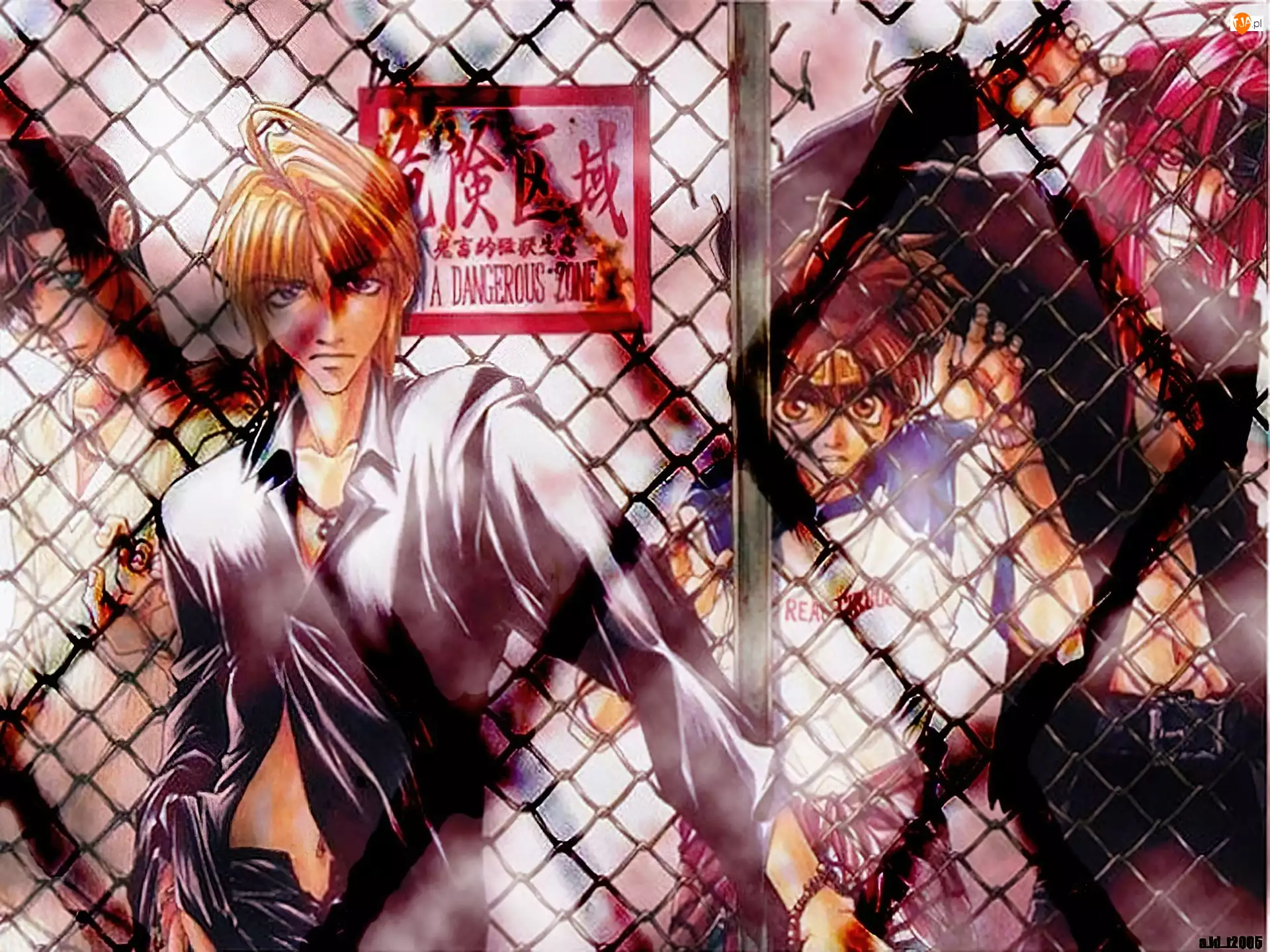 tabliczka, Saiyuki, siatka, płot, ludzie