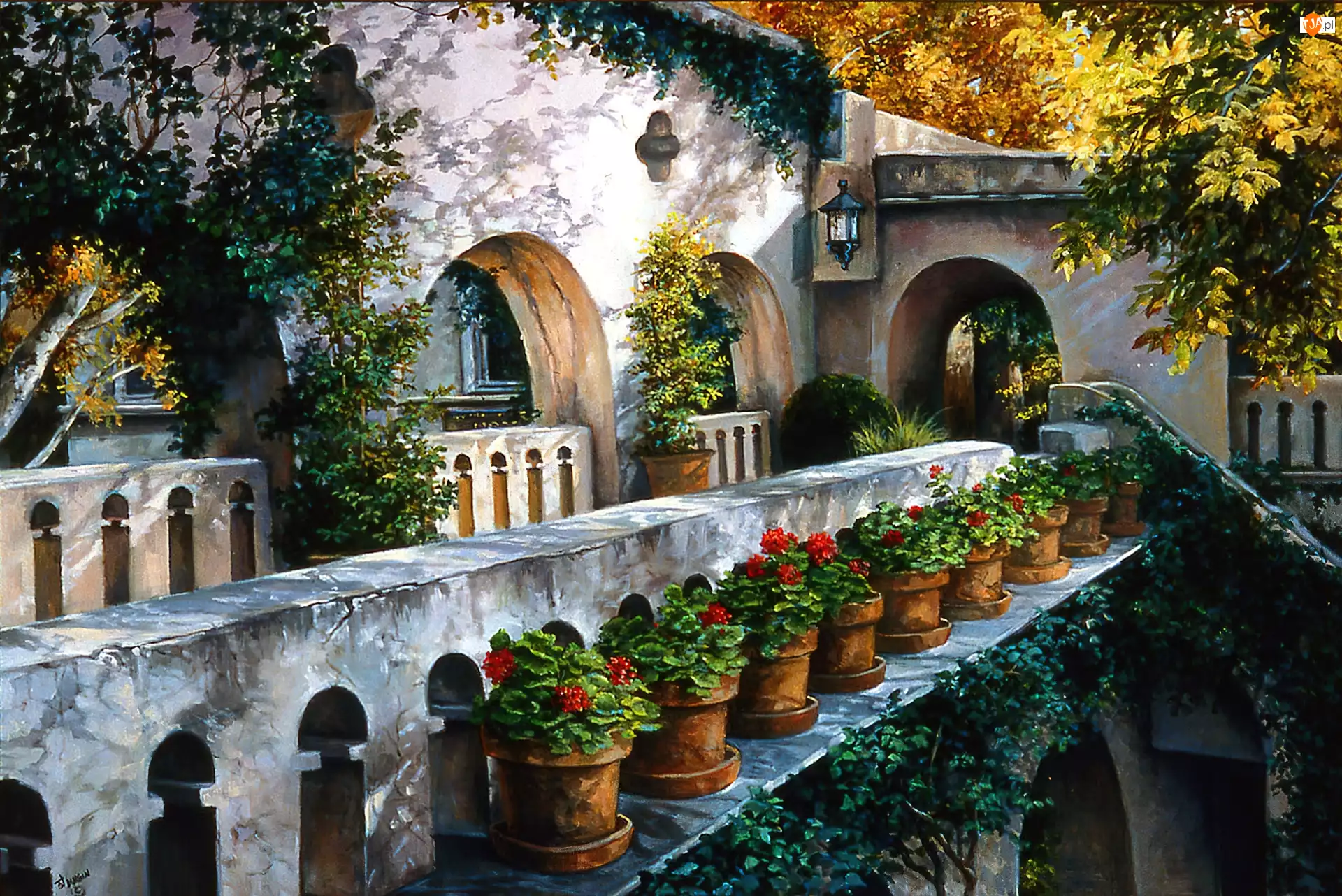 Taras, Obraz, Fasada, Kwiaty, Domu