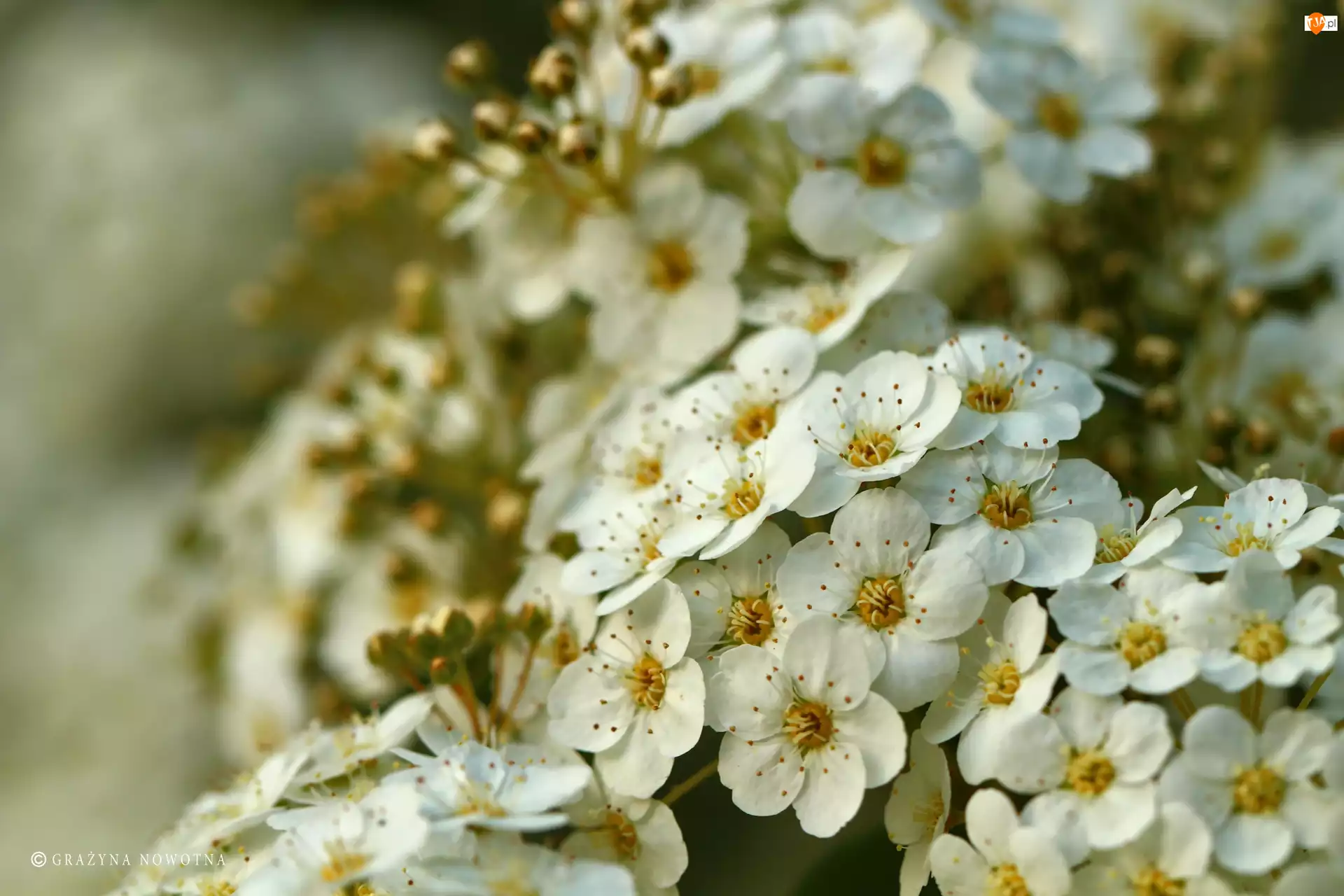 Tawuła Van Houttea, Krzew, Białe, Kwiaty