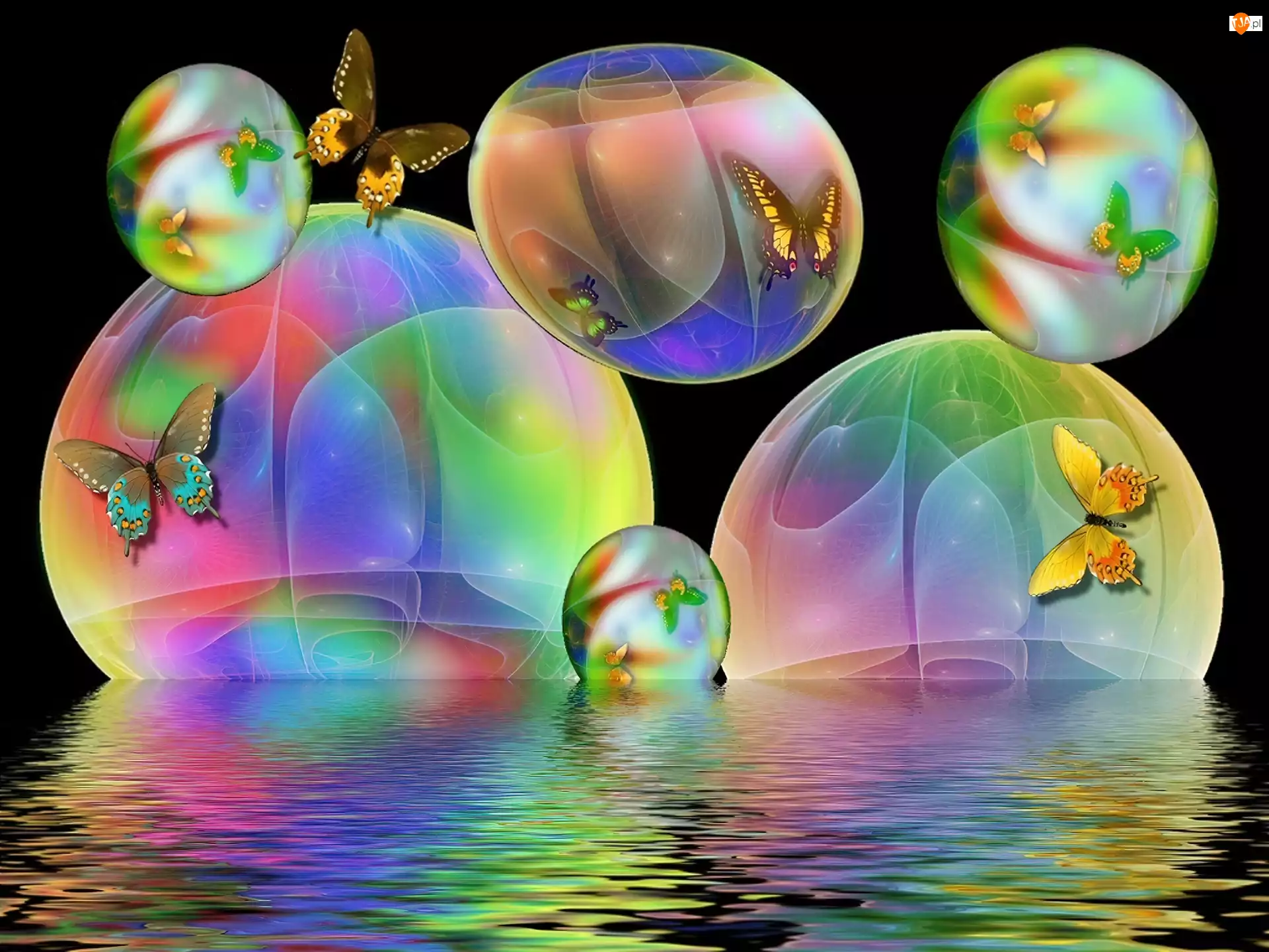Tęczowe, Motyle, Bańki, Woda