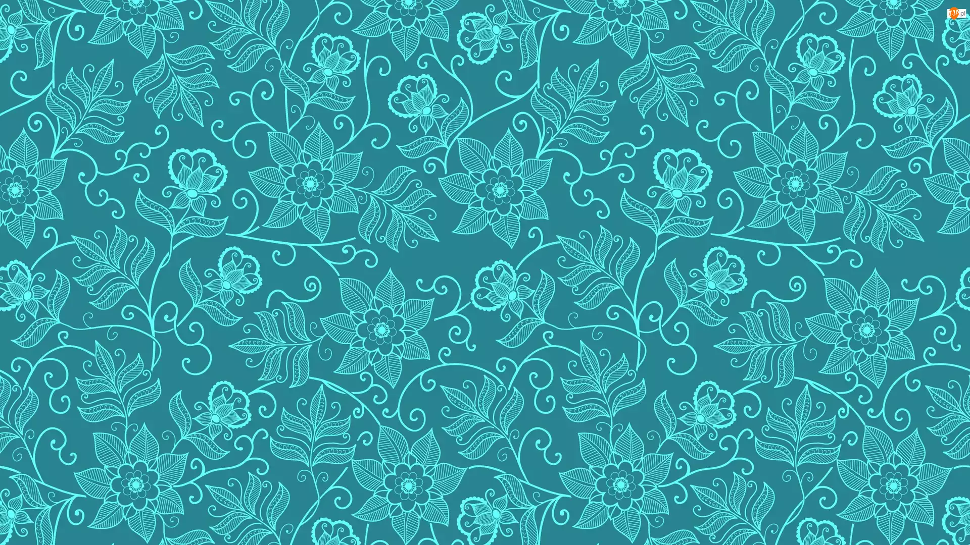 Turkusowe tło, Tekstura, Kwiaty, Liście