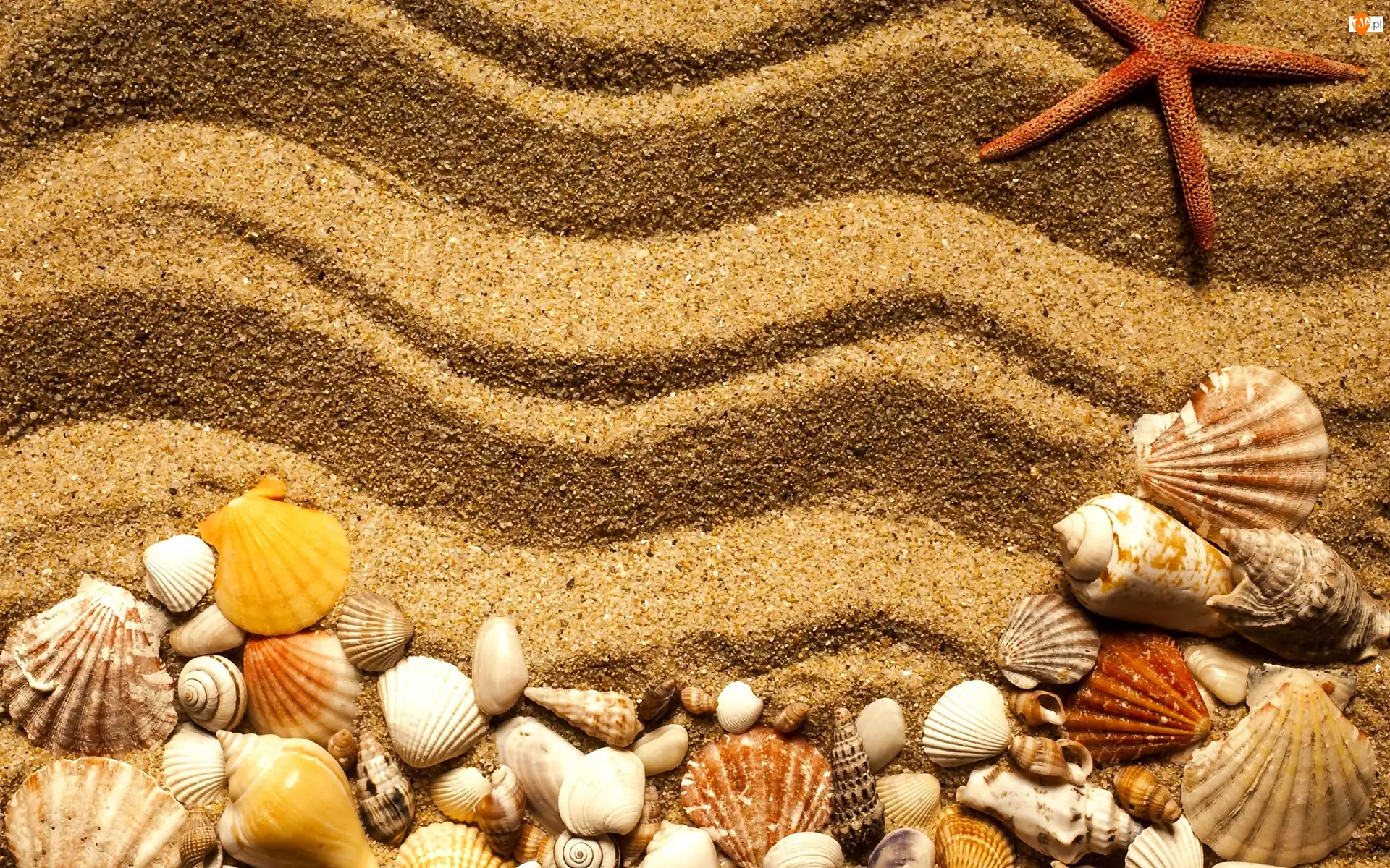 Tekstura, Muszelki, Lato, Piasek, Makro