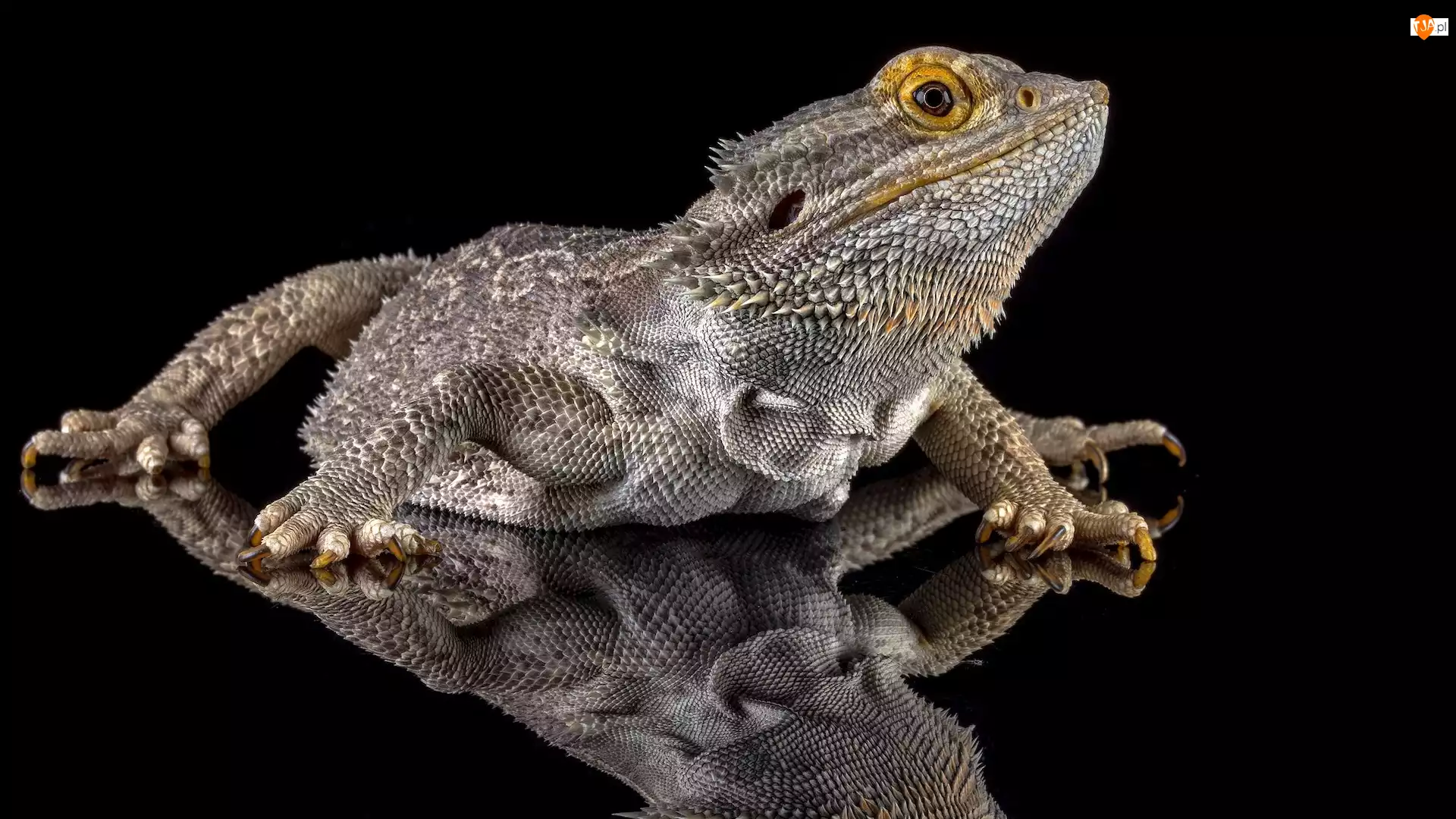 Tło, Odbicie, Agama brodata, Jaszczurka, Czarne