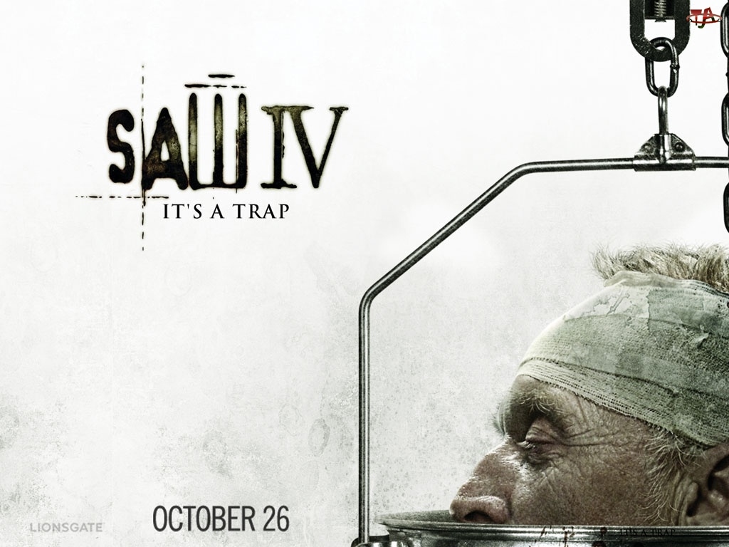 Tobin Bell, Piła 4, bandaż, głowa, napis