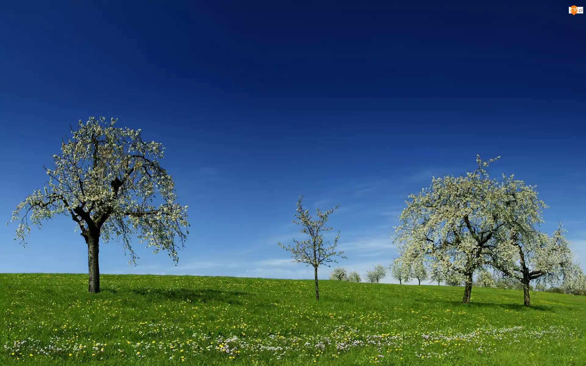 Polne, Trawa, Drzewa, Kwitnące, Kwiaty