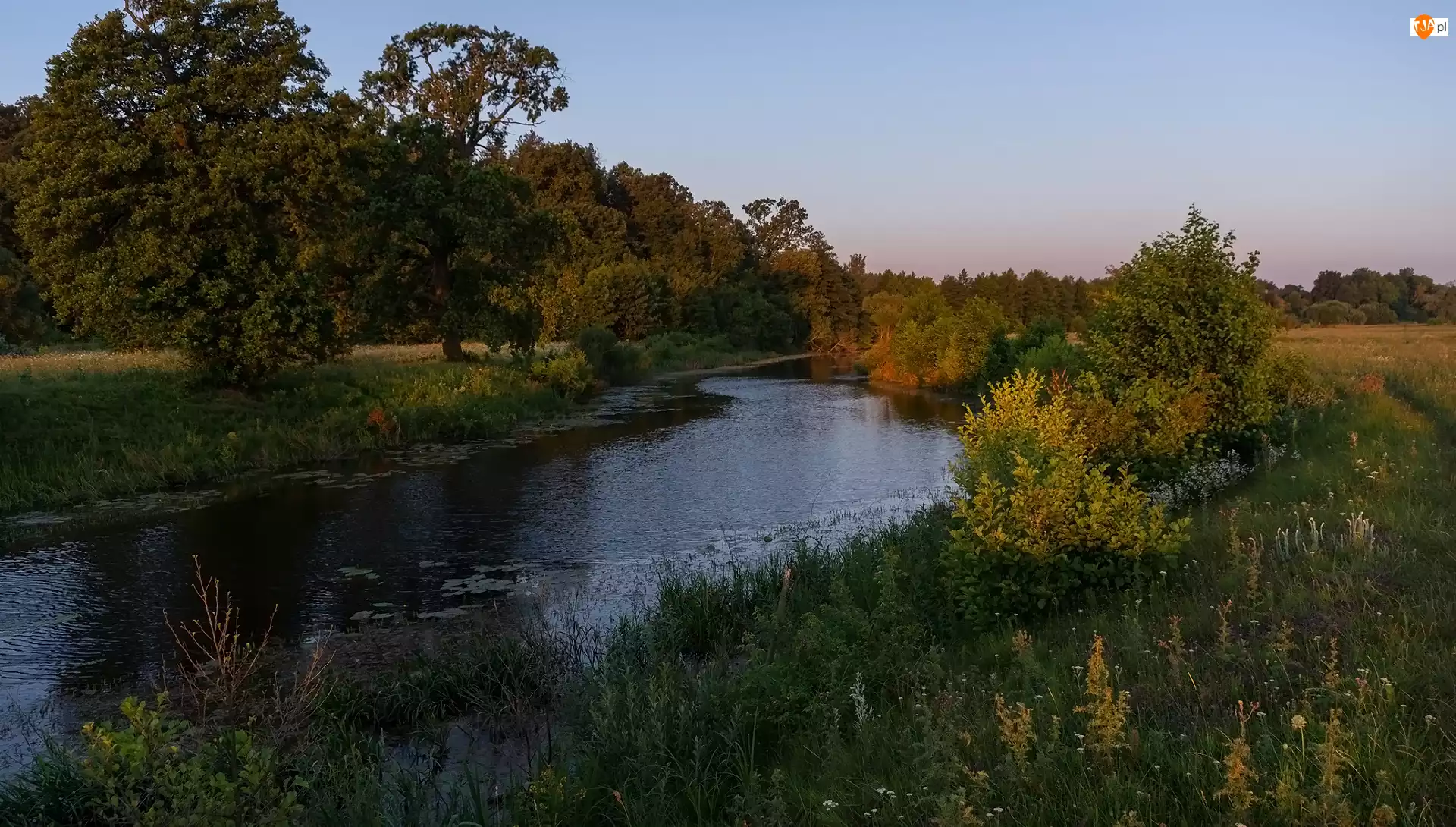 Trawa, Lato, Drzewa, Rzeka, Rośliny