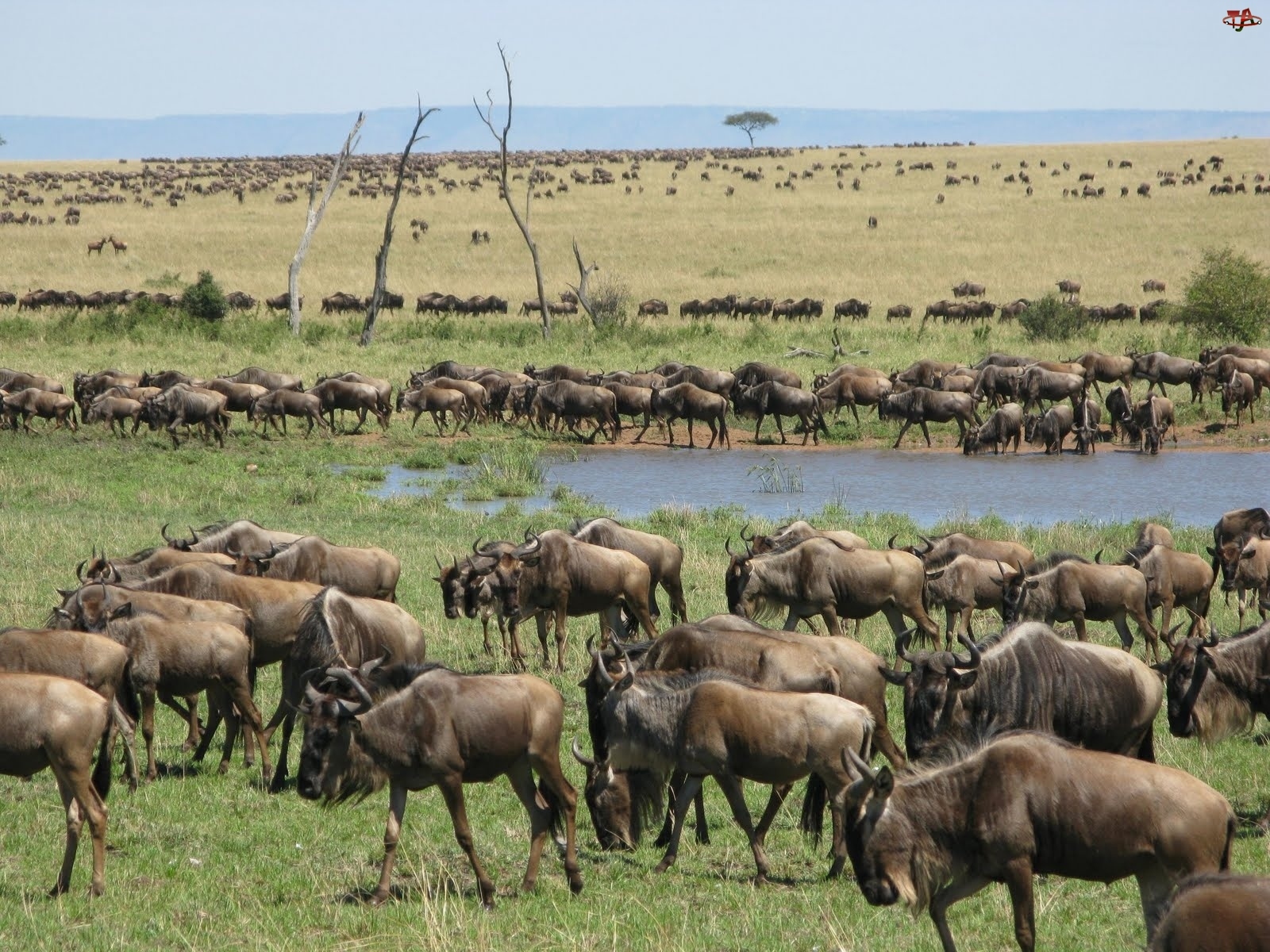Trawa, Migracja, Antylopy, Serengeti, Gnu, Woda