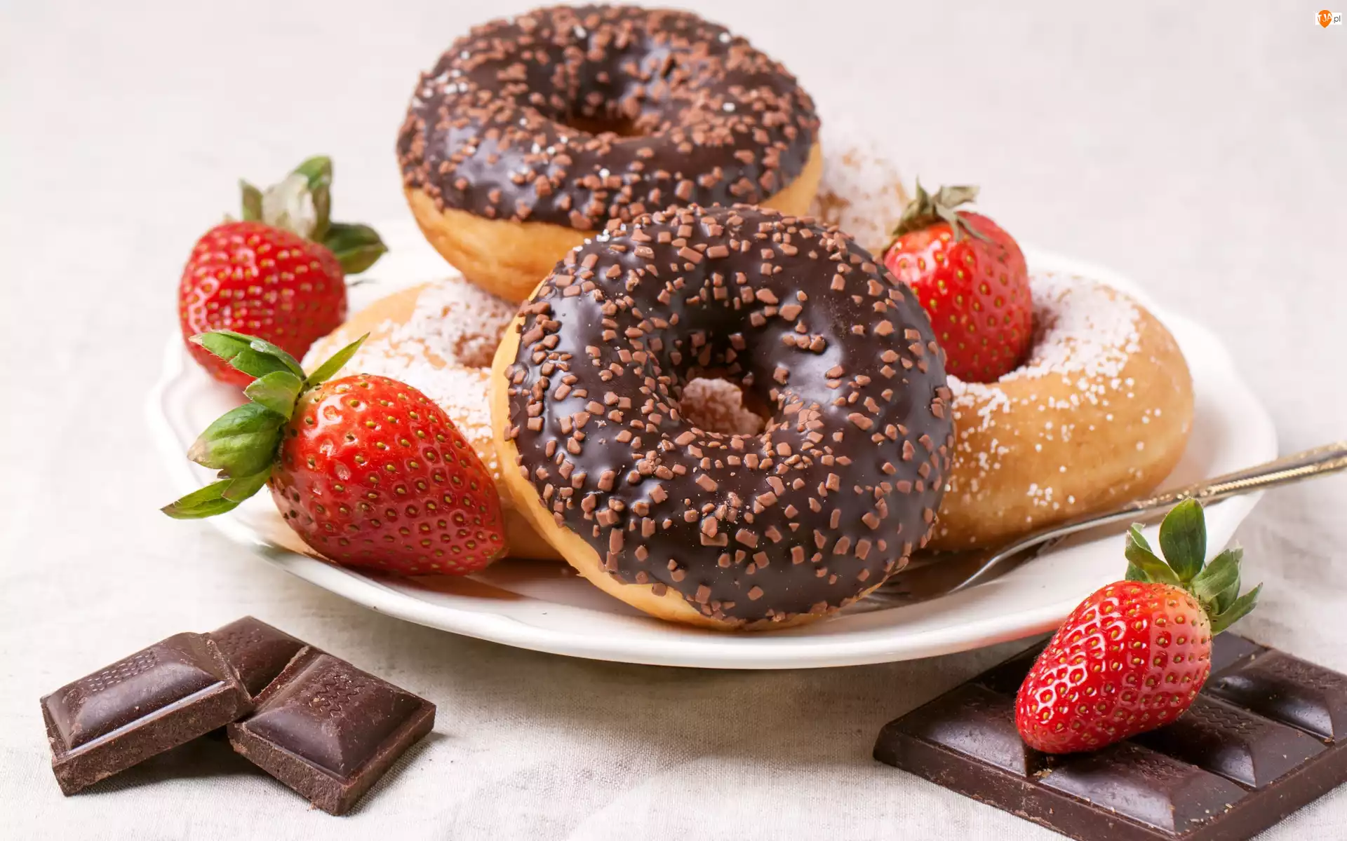 Truskawki, Talerzyk, Donuty, Pączki, Czekolada