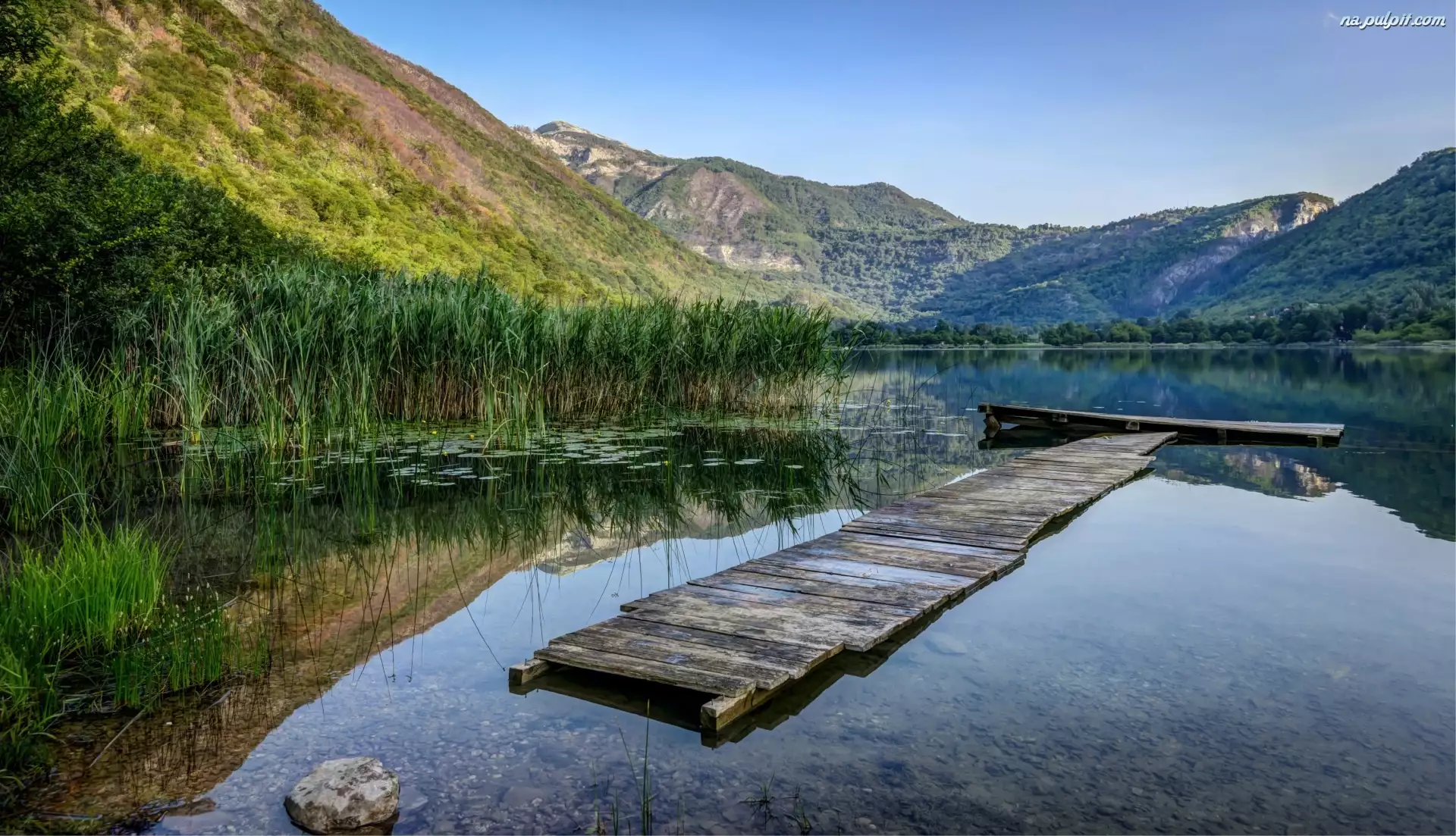 Odbicie, Trzciny, Jezioro, Góry, Pomost
