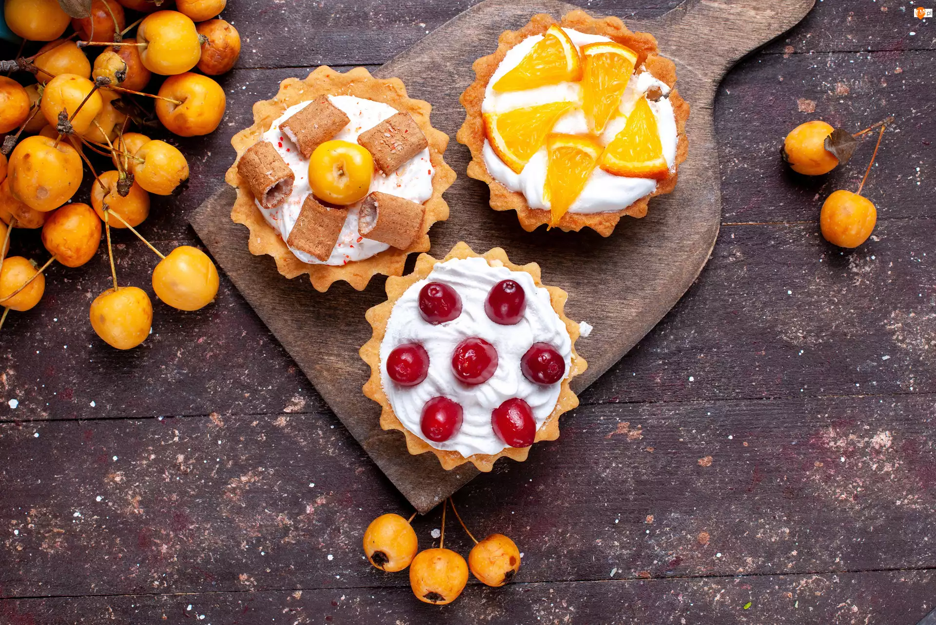 Babeczki, Tartaletki, Różne, Deska, Krem, Owoce