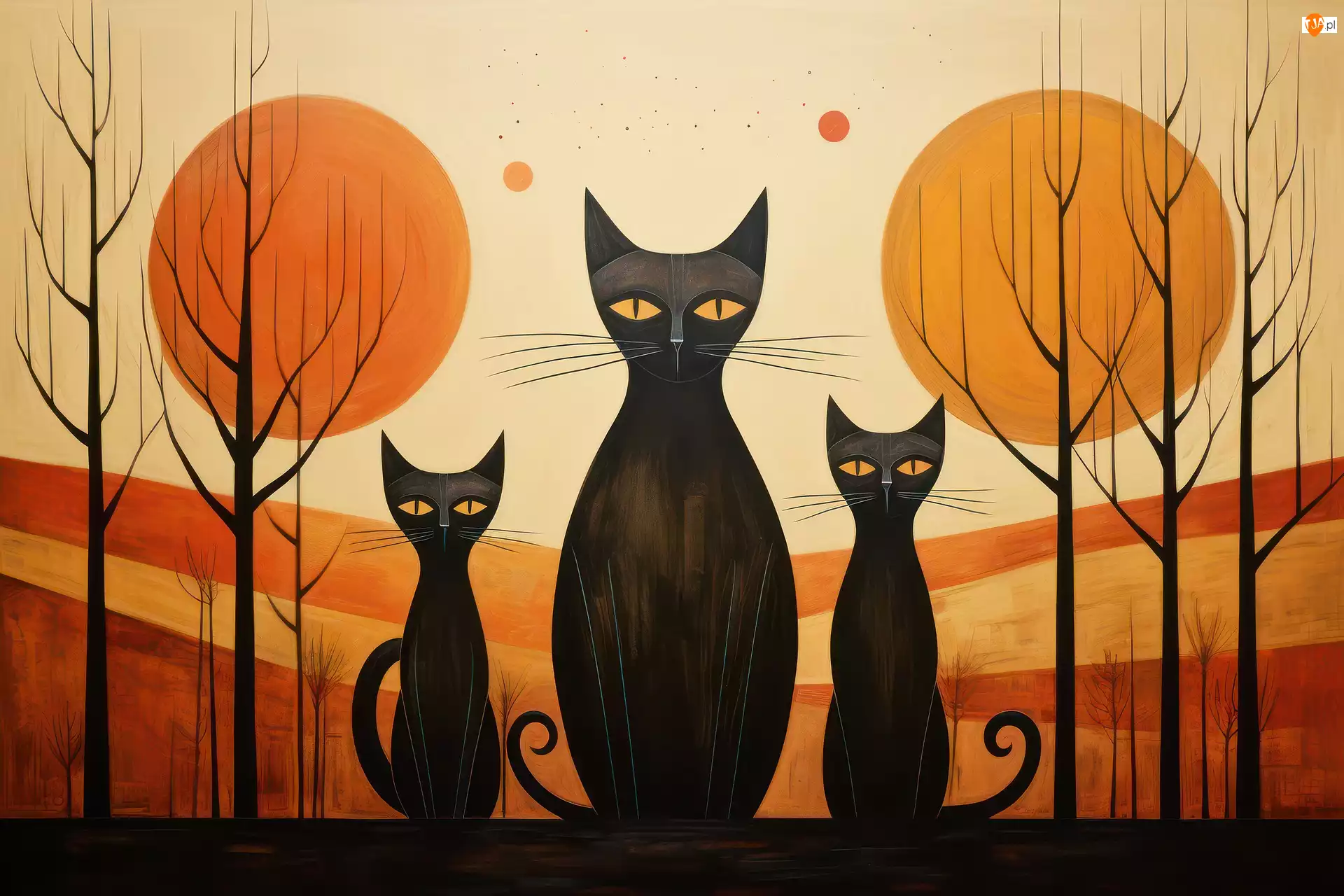 Trzy czarne koty w grafice