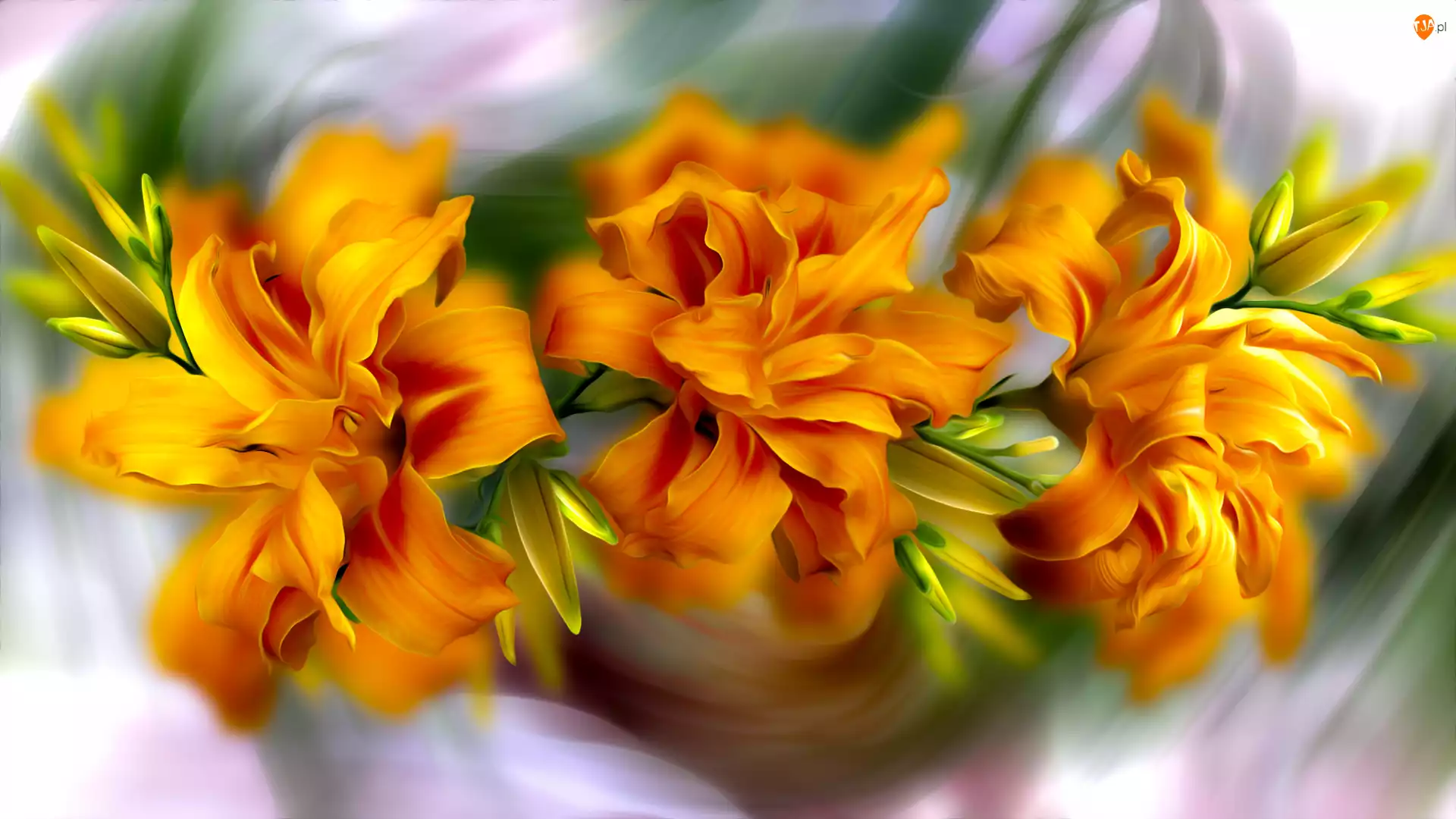 Grafika, Kwiaty, Pomarańczowe, Lilie