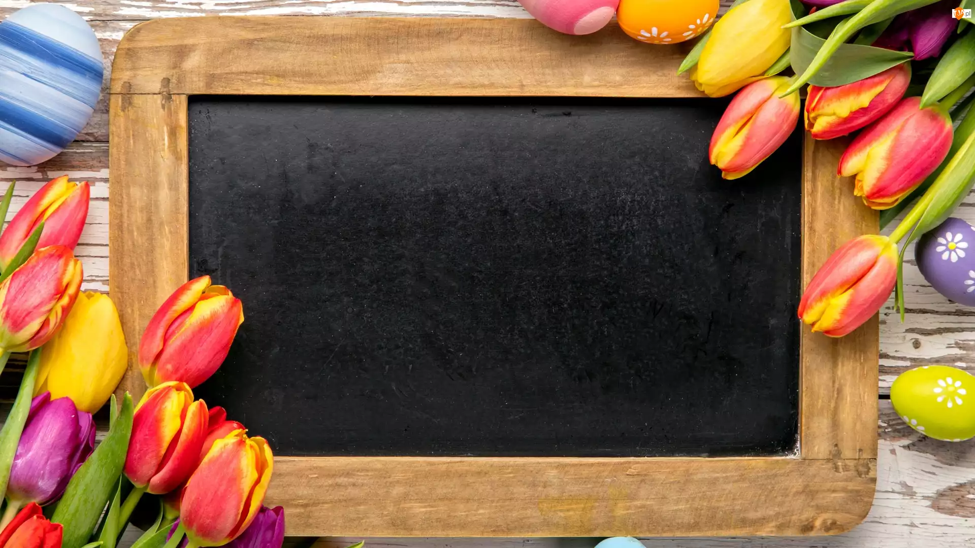 Jajka, Tabliczka, Tulipany, Wielkanoc, Pisanki