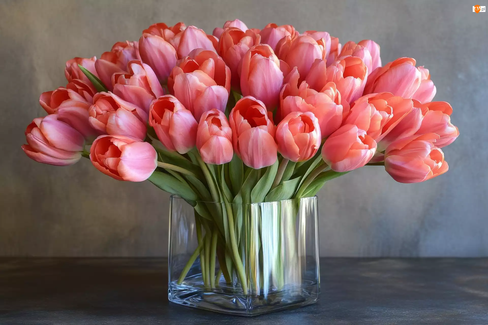 Tulipany, Wazon, Różowe, Bukiet, Szklany