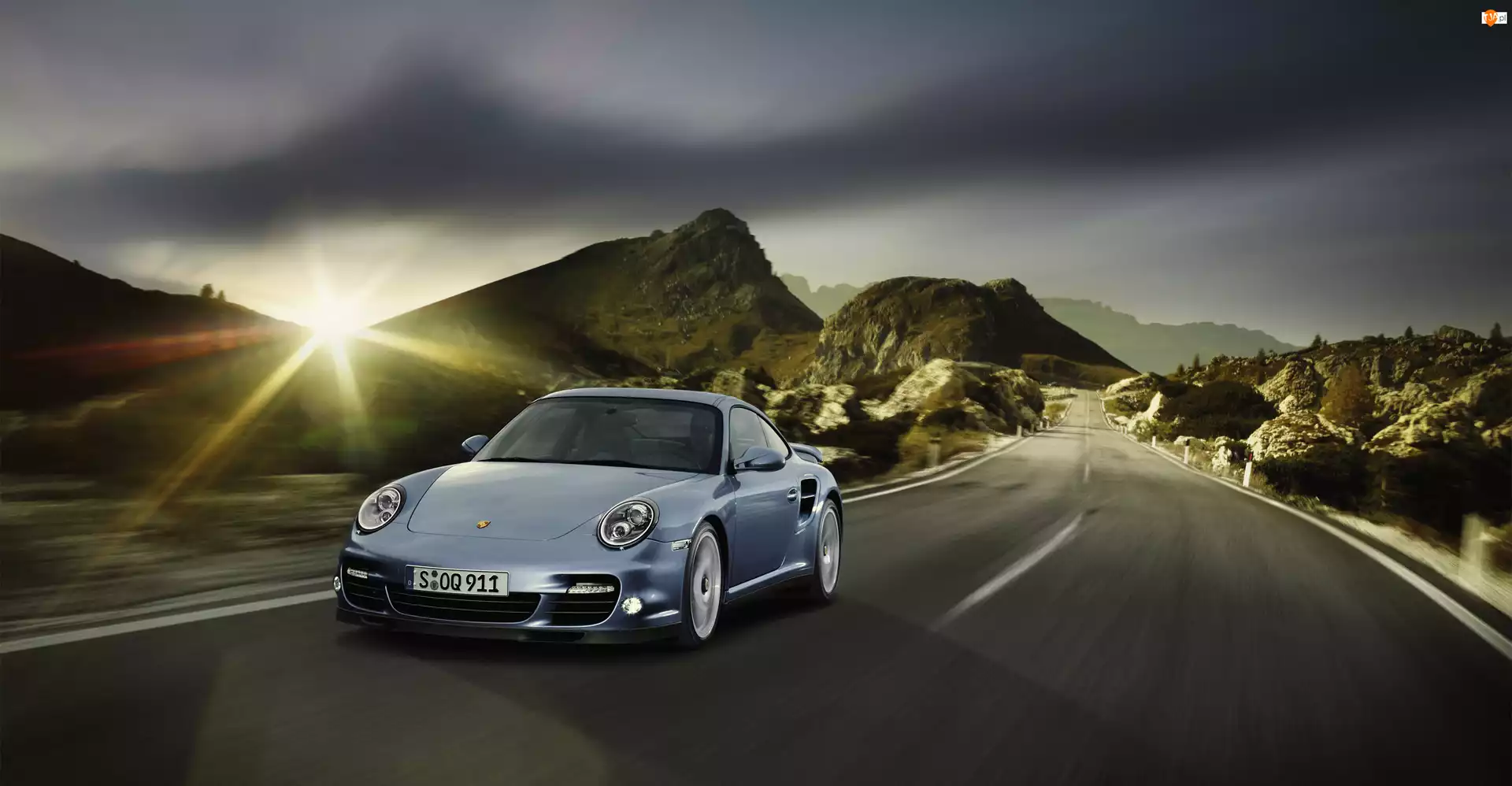 Turbo, Droga, Porsche, Promienie, Samochód, Słońca, 911, Góry