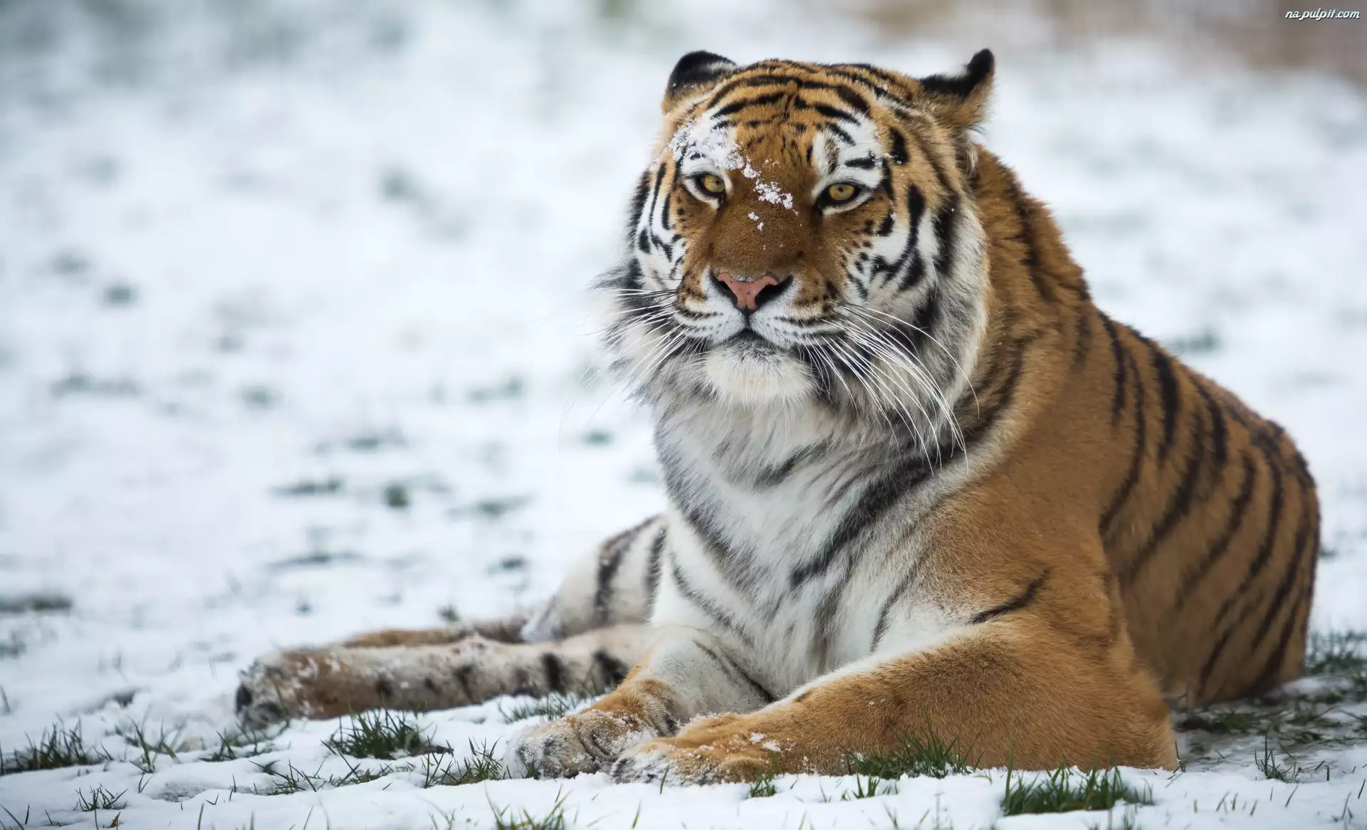 Tygrys leżący w śniegu