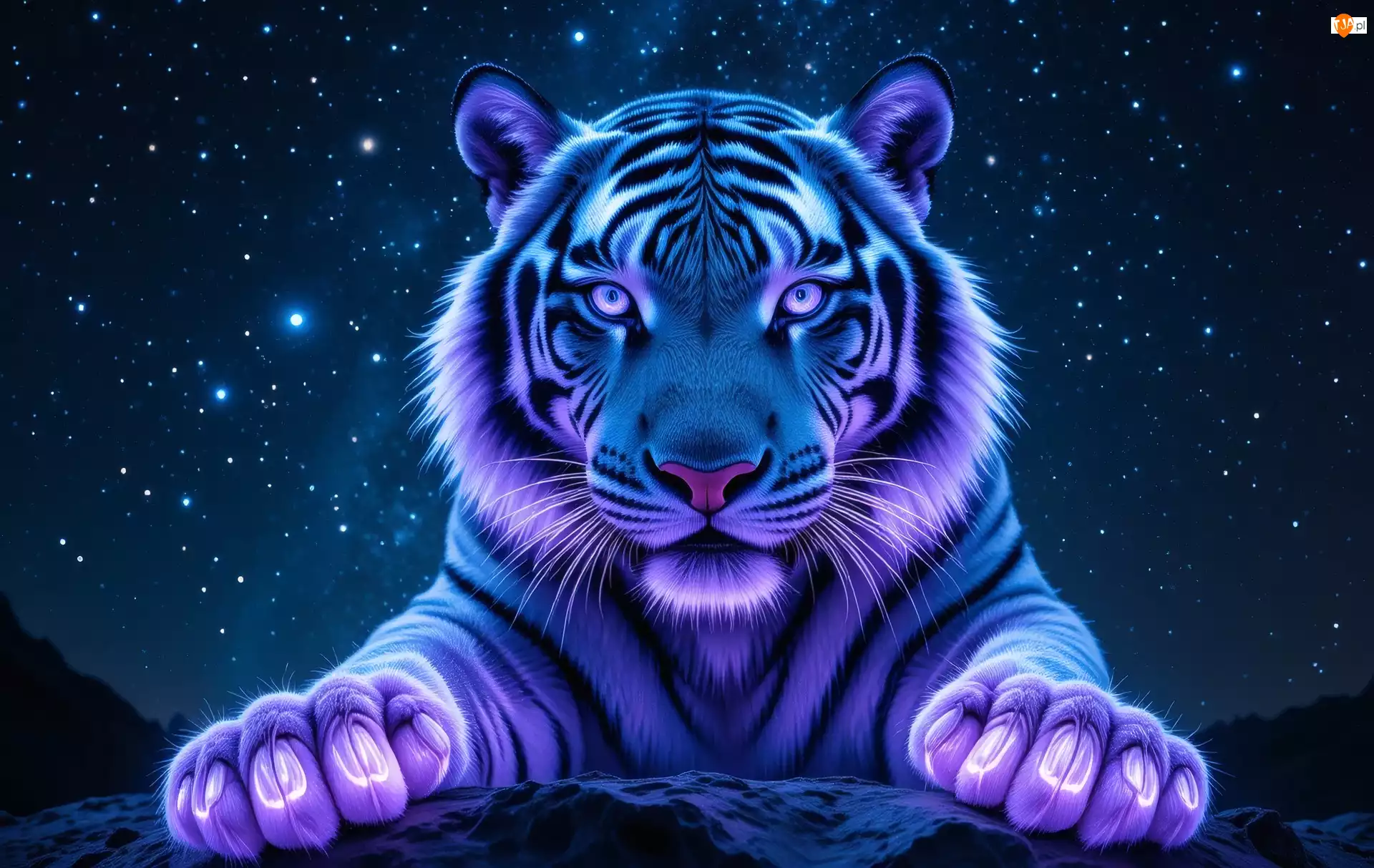 Tygrys w poświacie luminacji na tle gwiazd