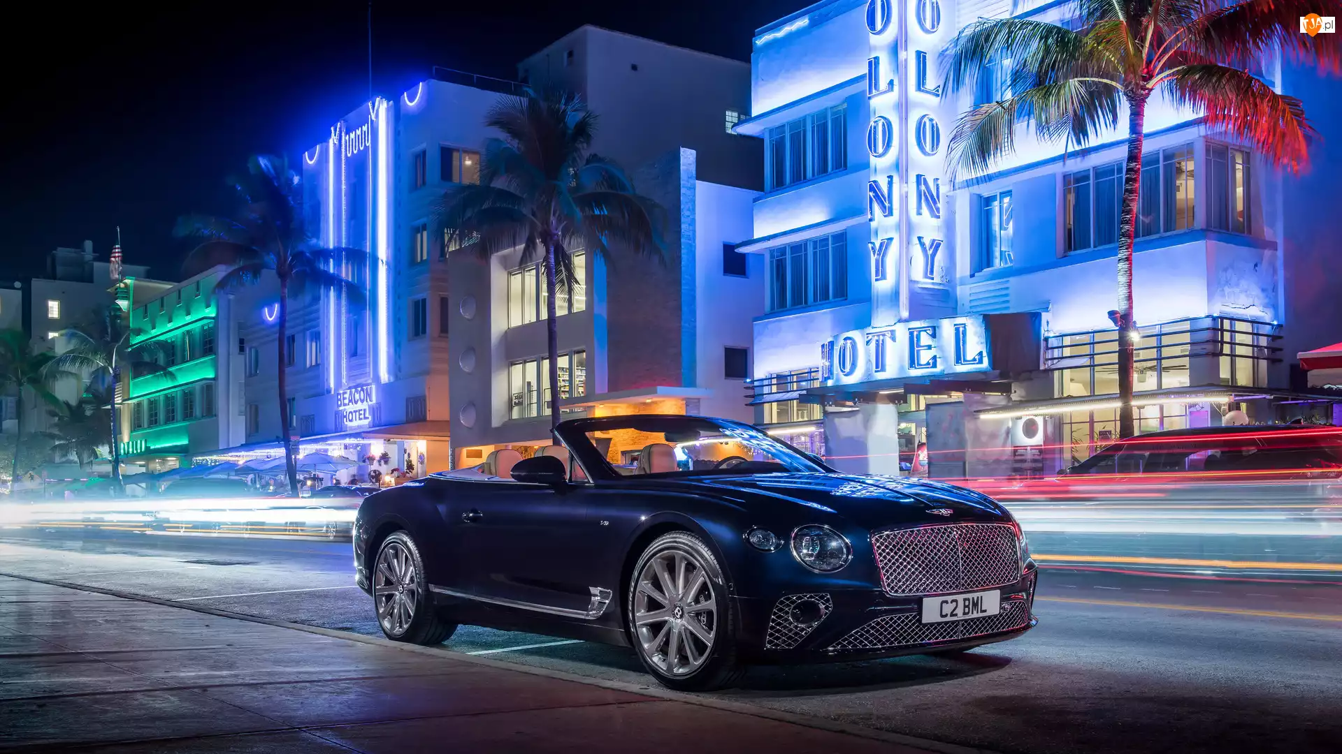 Ulica, Noc, Cabrio, Bentley Continental GT V8, Domy