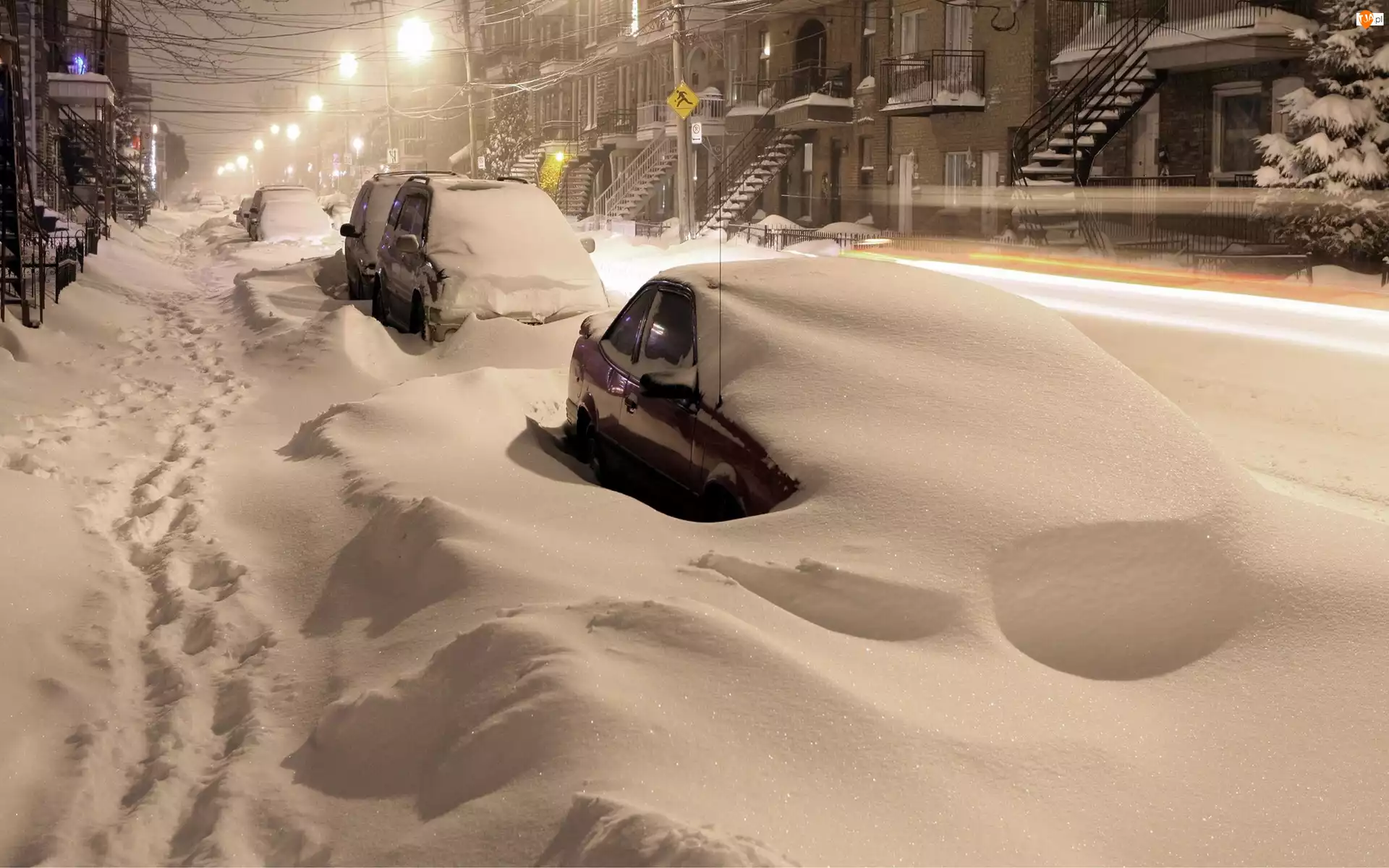 Ulica, Zaspy, Noc, Zima