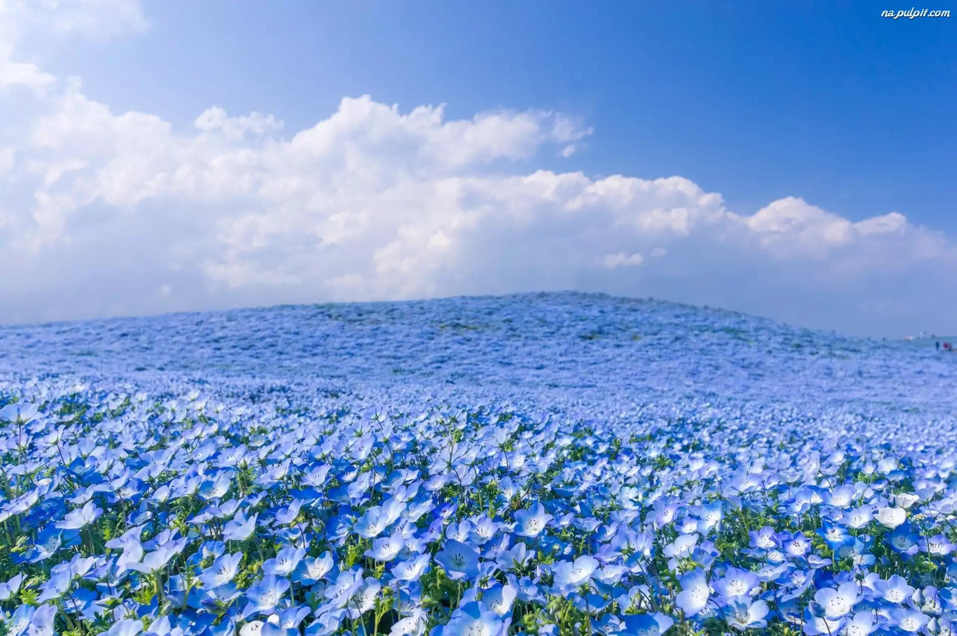 Niebieskie, Uprawa, Chmury, Niebo, Kwiatuszki