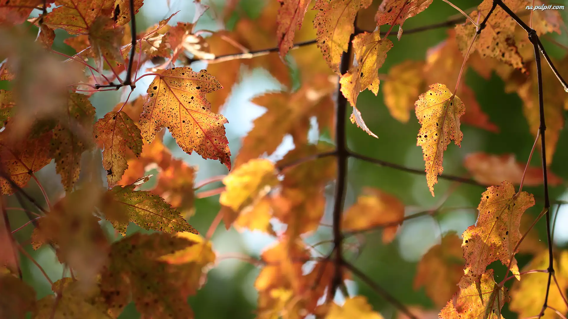 Jesienne, Rozmyte tło, Liście, Gałązki