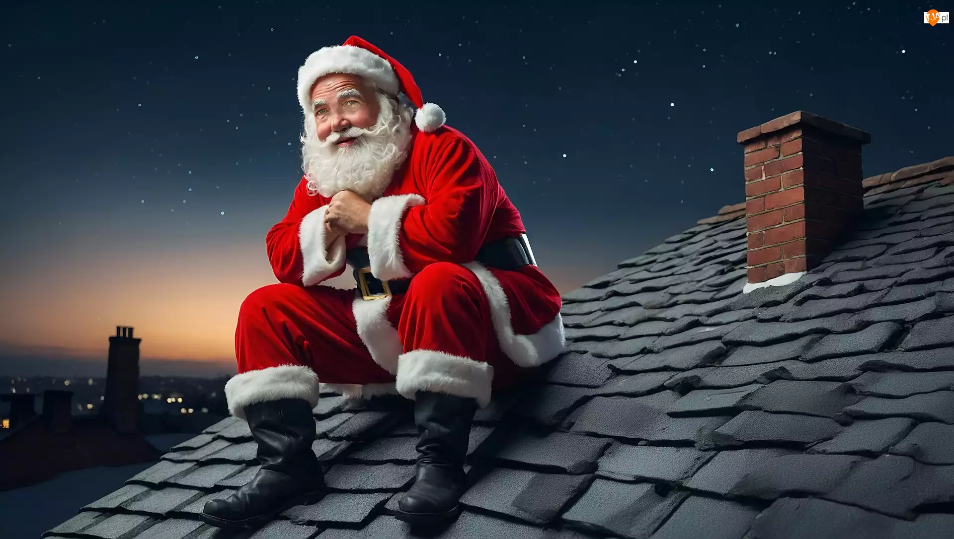 Mikołaj, Uśmiech, Noc, Święty, Komin, Dach, Dom