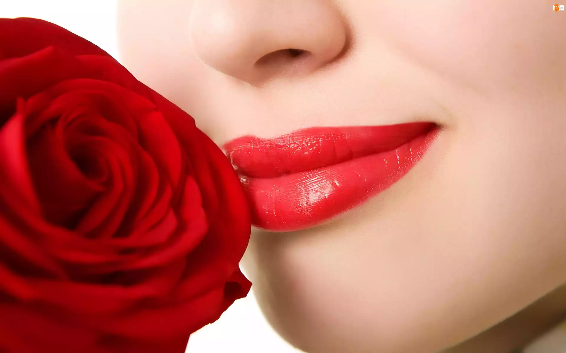 Usta, Czerwona, Kobieta, Róża, Czerwone