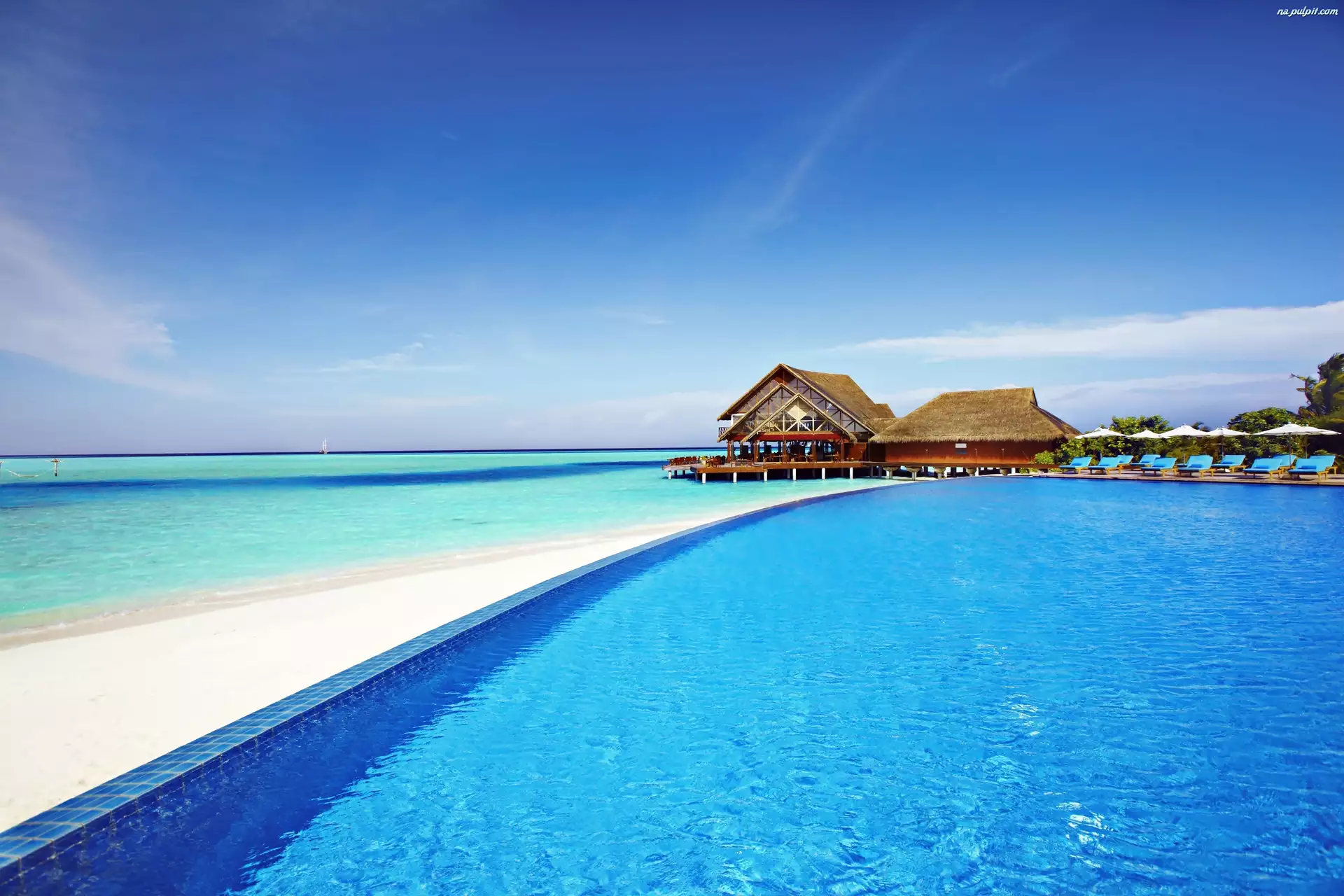 Wakacje, Morze, Leżaki, Parasole, Basen