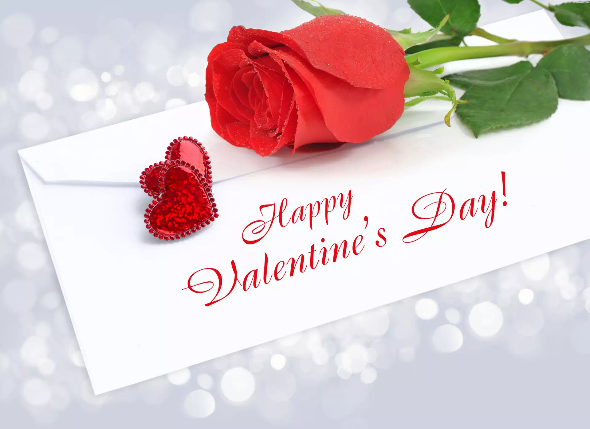 Walentynki, Róża, Serduszka, Koperta