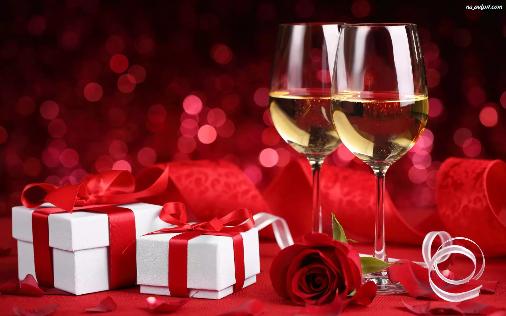 Szampan, Prezenty, Kieliszki, Róża, Walentynki