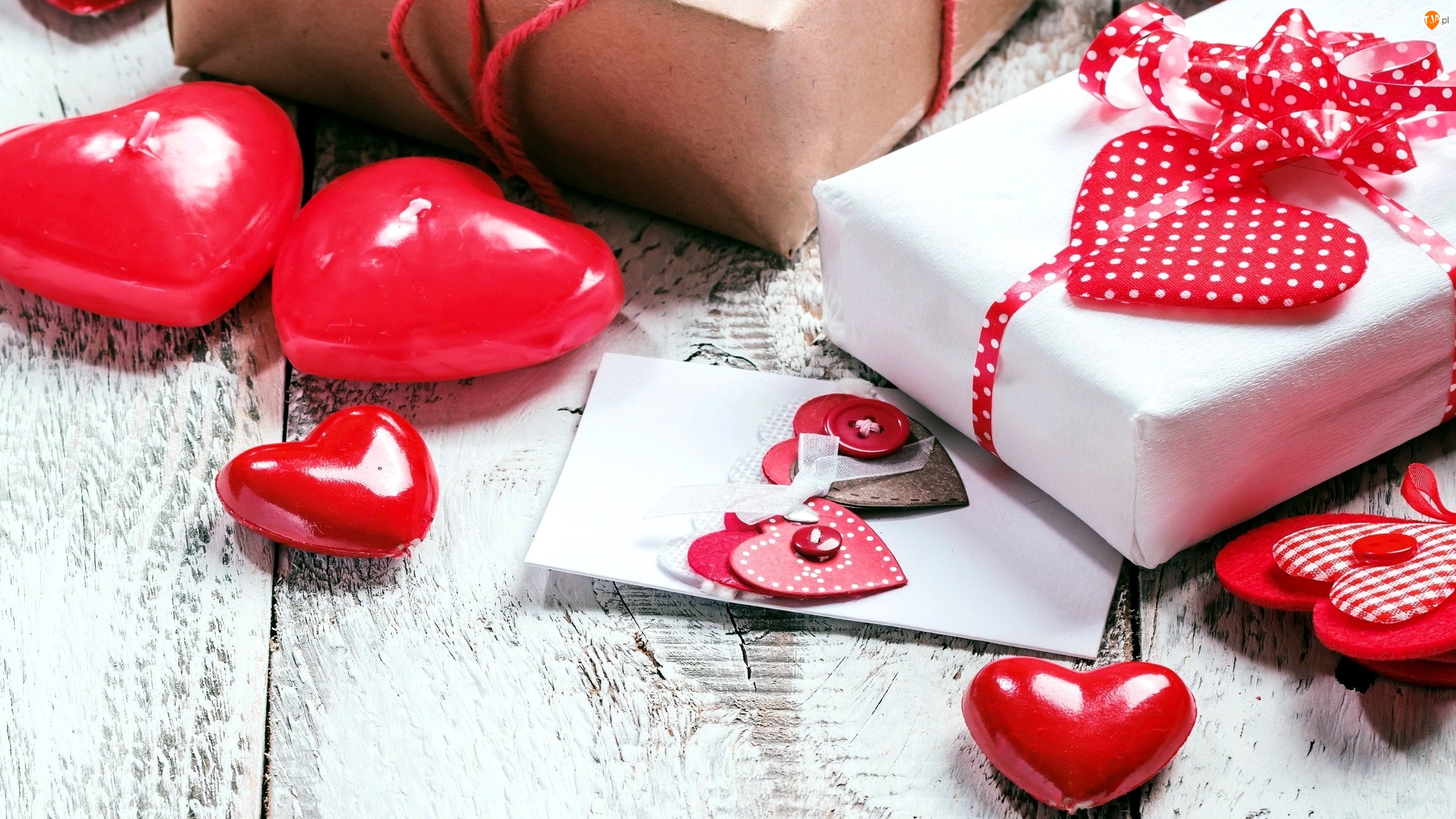 Prezenty, Świeczki, Serca, Walentynki, Kartka