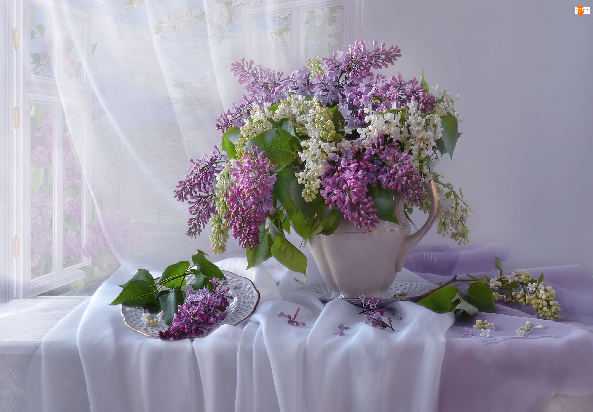 Wazon, Kompozycja, Bukiet, Bez, Talerzyk