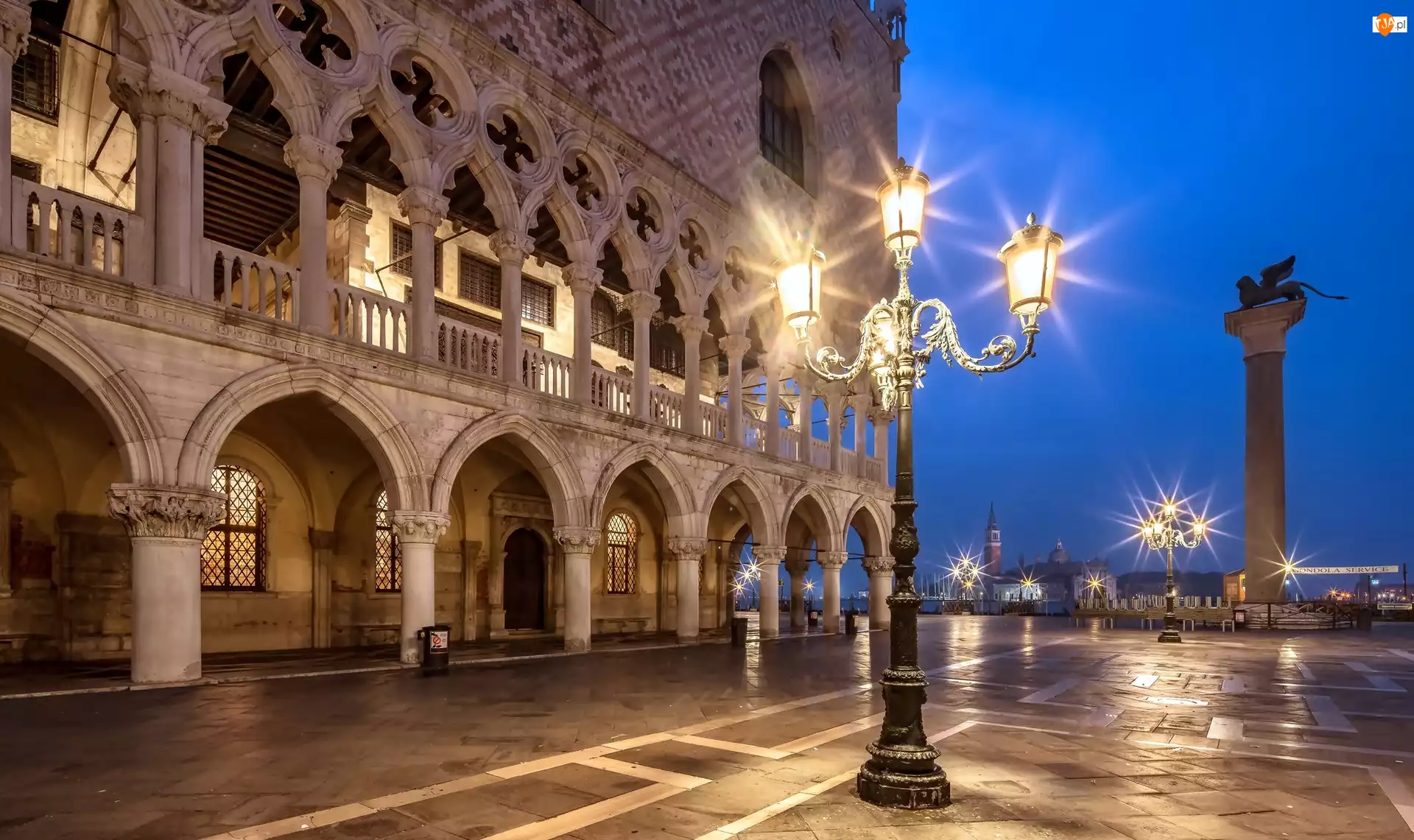 Kolumna św Marka, Pałac Dożów, Włochy, Latarnie, Wenecja, Piazzetta San Marco